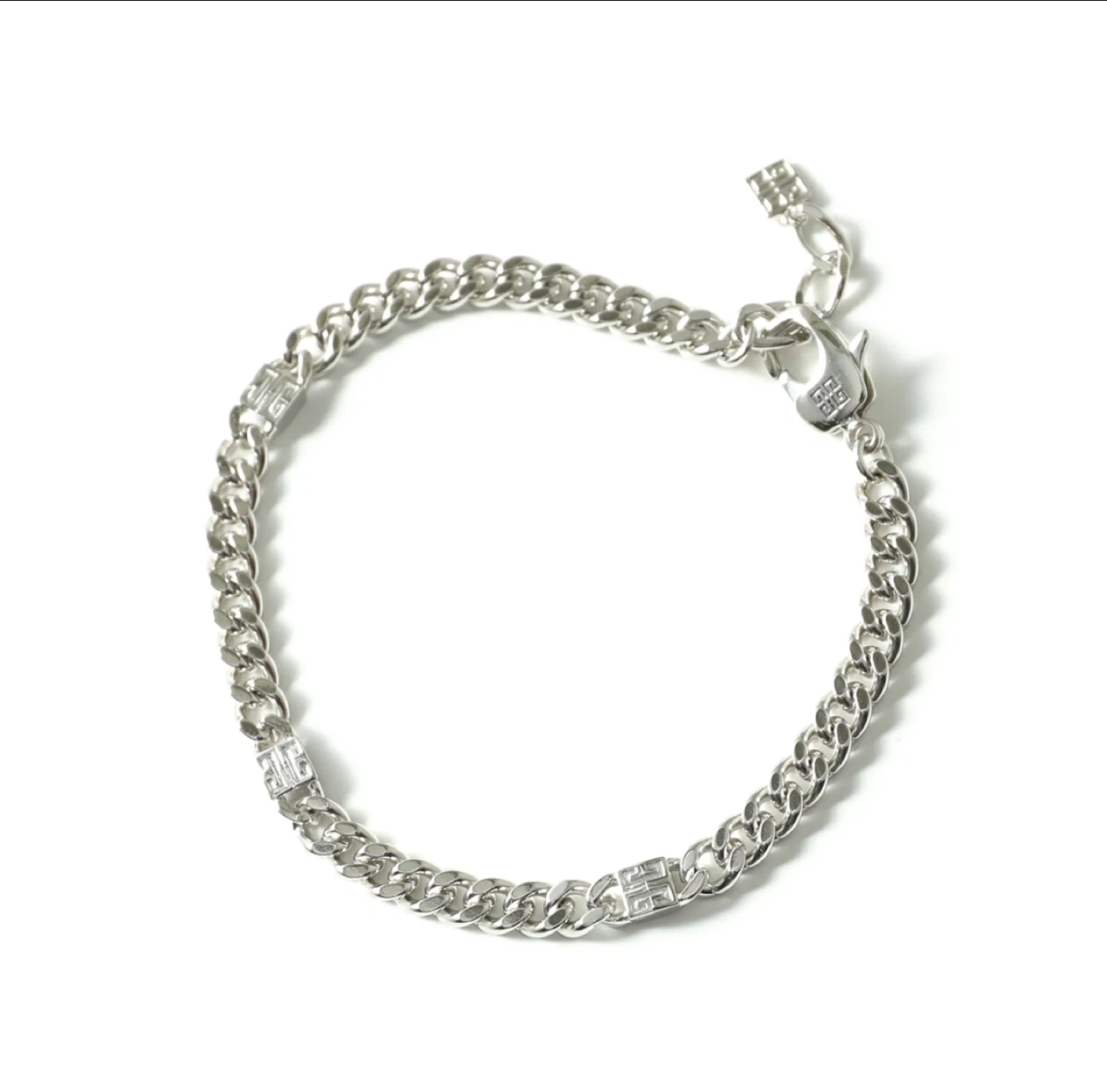 Selling a stylish Givenchy silver-tone curb chain bracelet. This bracelet features a classic curb chain design with the Givenchy logo subtly incorporated into the links. It's a great accessory to add a touch of luxury to any outfit!