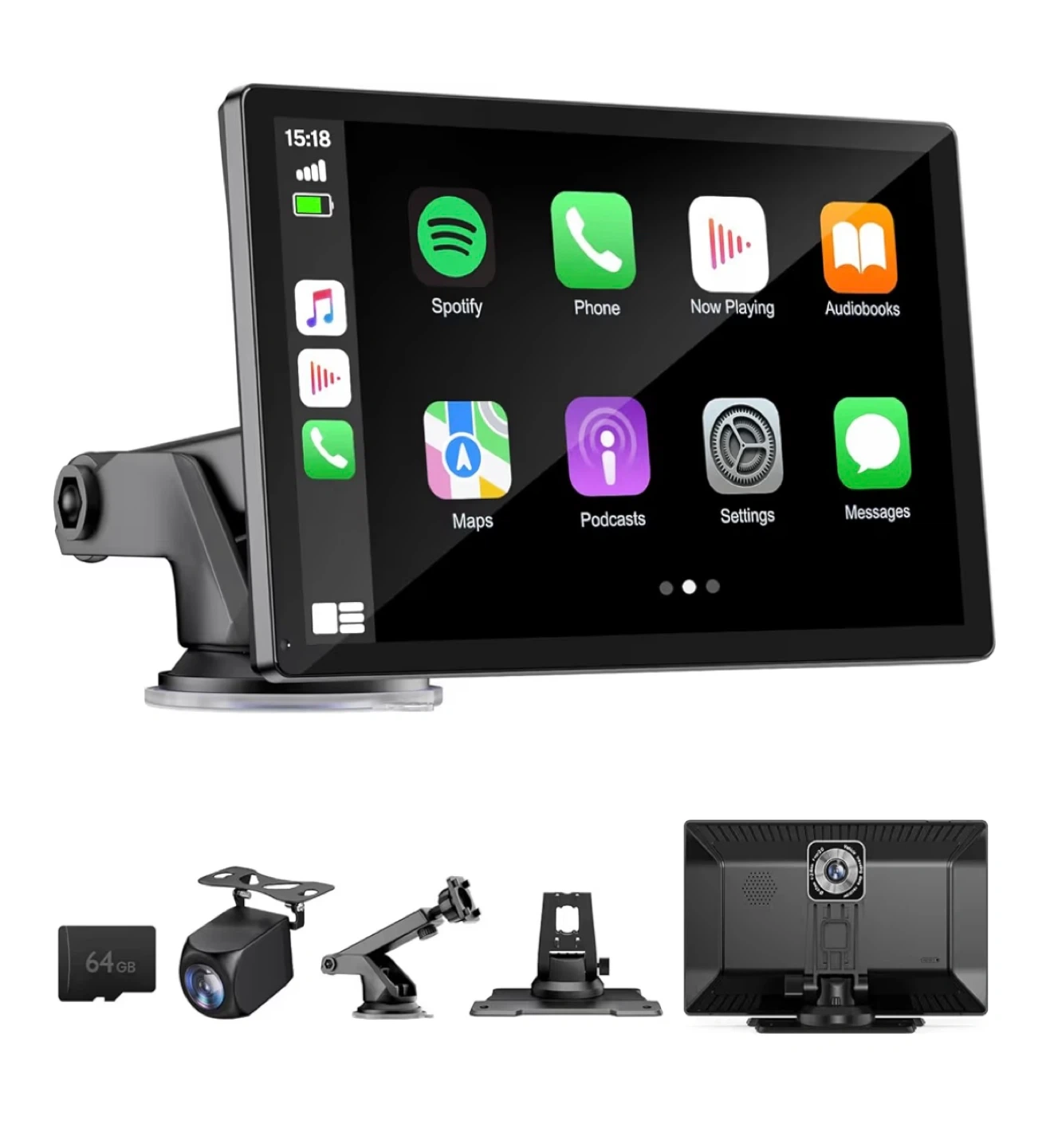 Looking to upgrade your car's entertainment system? This car stereo receiver is compatible with both CarPlay and Android Auto. It comes with a 64GB storage card and all the necessary mounting hardware. Enjoy easy access to your favorite apps like Spotify, Maps, and Podcasts right on your car's display!
