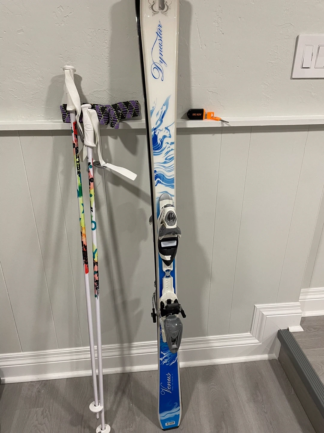 Selling a pair of Dynastar Venus skis, complete with poles! They're in great shape and ready for the slopes. The skis are made in France and come with a black carrying bag for easy transport and storage