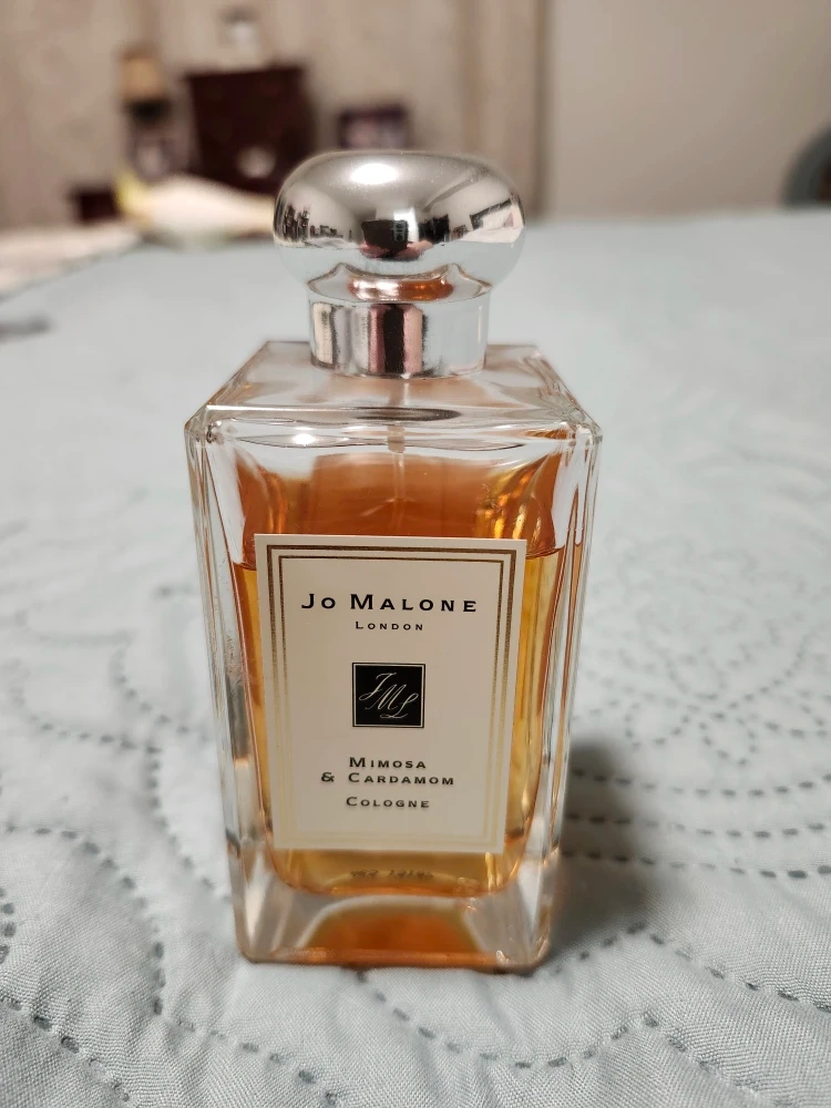 Selling a bottle of Jo Malone Mimosa & Cardamom Cologne. It's a 3.4 fl oz (100 ml) bottle. A lovely scent for any occasion! Slightly used, nice but a bit too sweet for me.