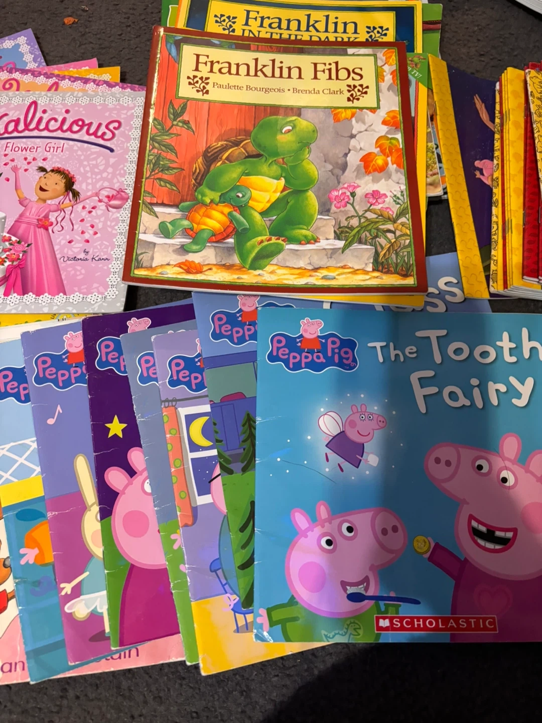 Selling a bundle of kids' books, perfect for young readers! Includes titles like Clifford Celebrates Hanukkah, Peppa Pig: The Tooth Fairy, The Berenstain Bears, Pinkalicious Flower Girl, Franklin Fibs, and The Prince & the Pauper Little Classics