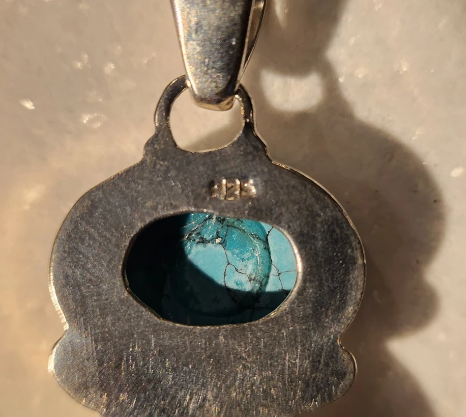 Natural Turquoise & Silver Pendant Necklace