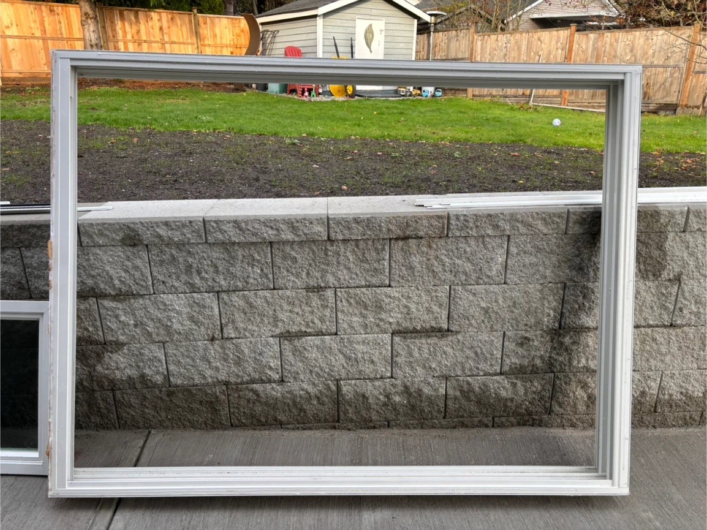 Selling a white window frame. It's in good condition and ready for a new home. Perfect for a renovation project or new construction