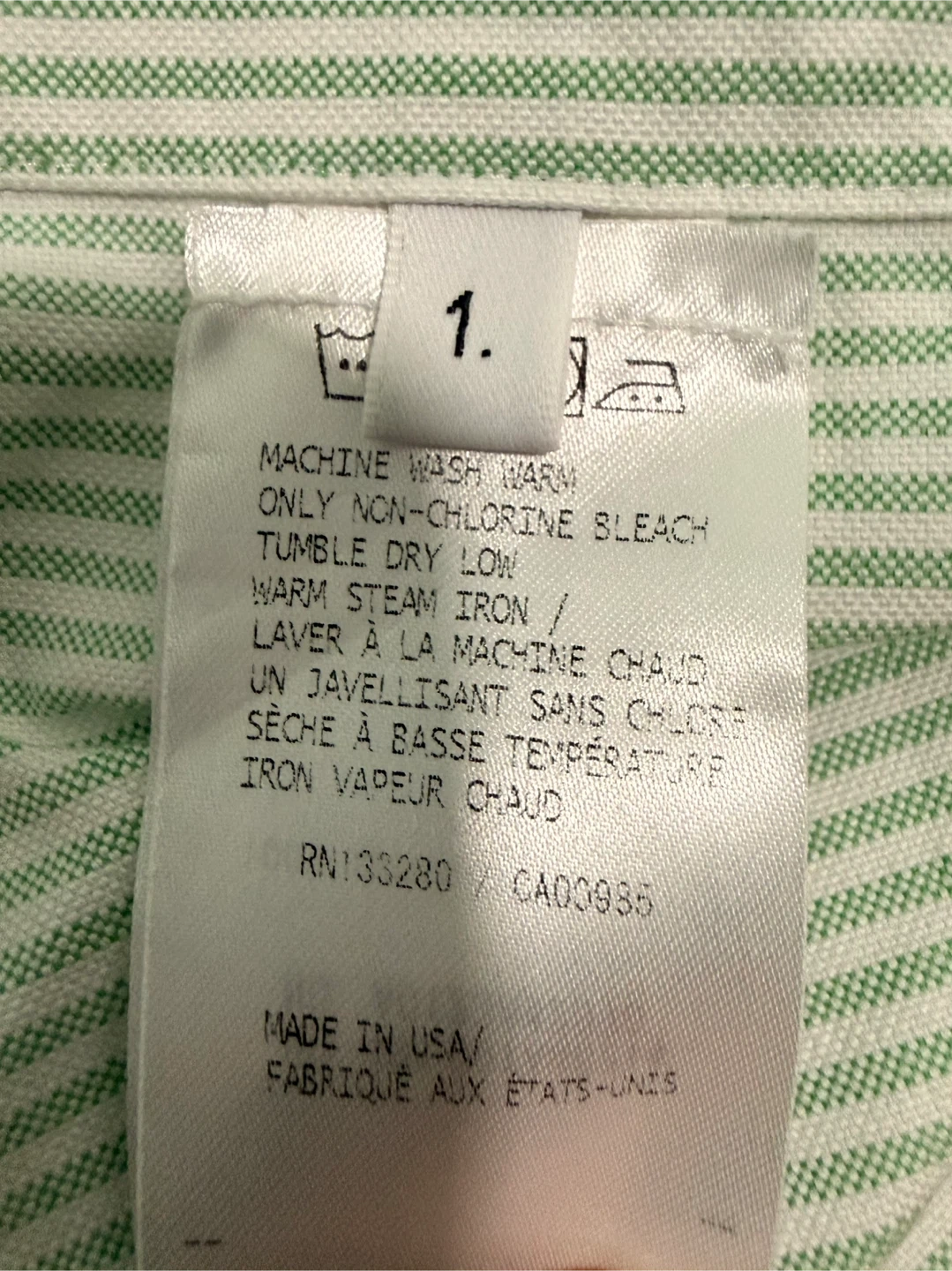 Color: stripe white and light green.