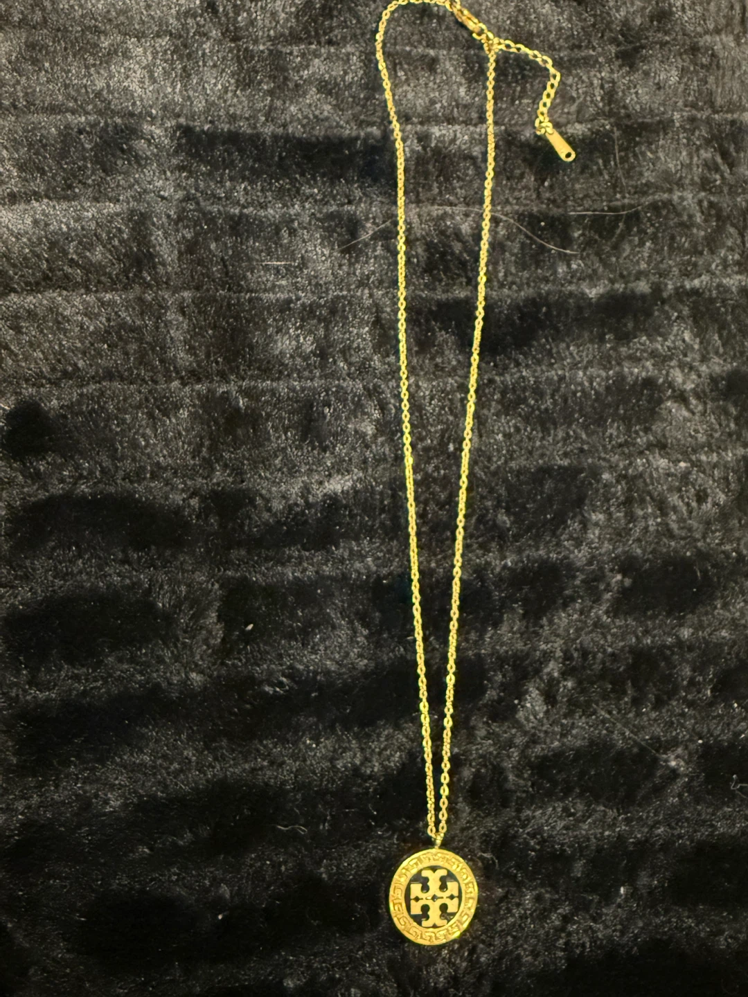 Selling a beautiful pendant necklace. It features a gold chain and a circular pendant. It is in great condition!