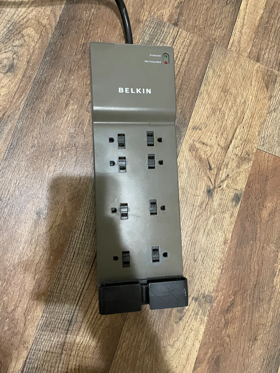 Selling a Belkin surge protector. It has 8 outlets and indicator lights for 'Protected' and 'Not Grounded'.