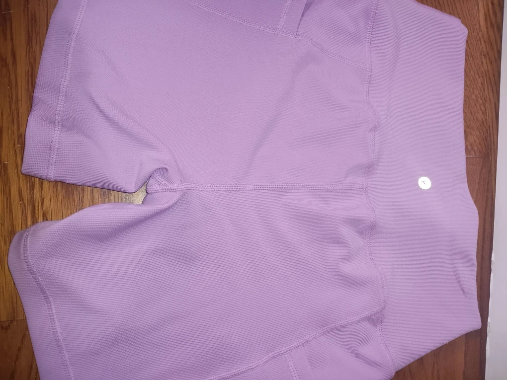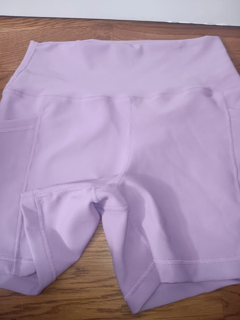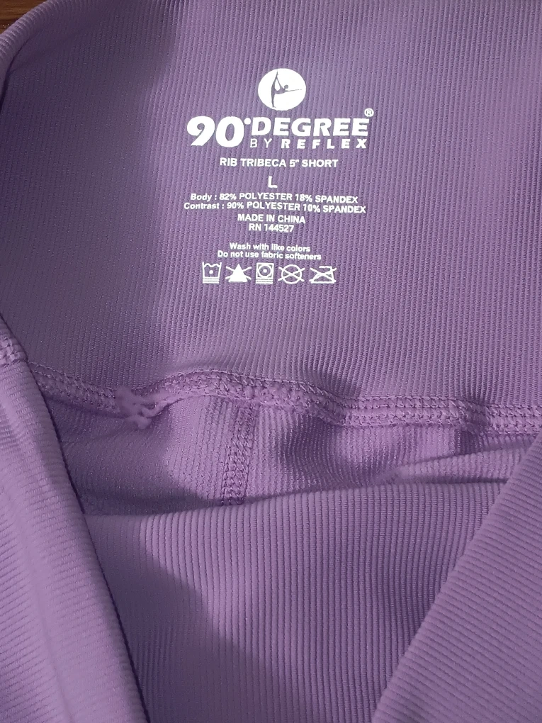 Selling a pair of 90 Degree by Reflex Rib Tribeca 5" shorts in size L! These shorts are a lovely purple color and are made of 82% polyester and 18% spandex for the body, with a contrast of 90% polyester and 10% spandex. They're in great condition and ready for a new home
