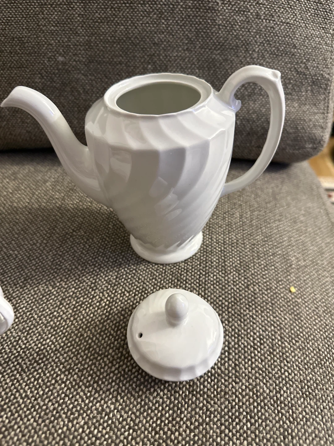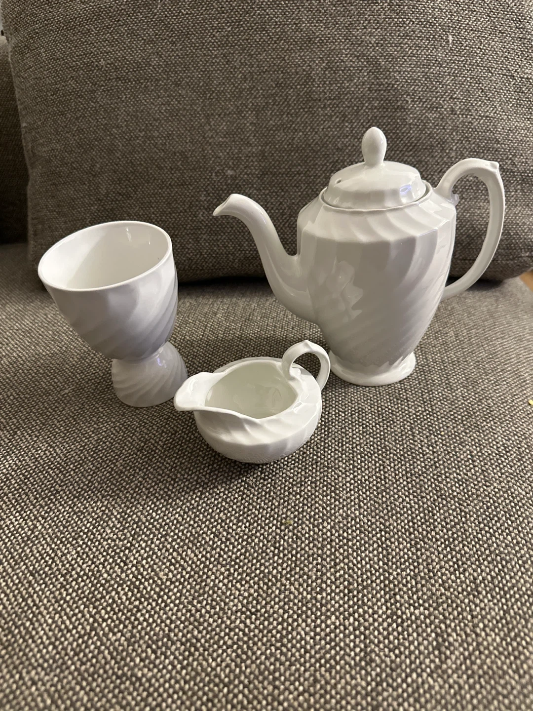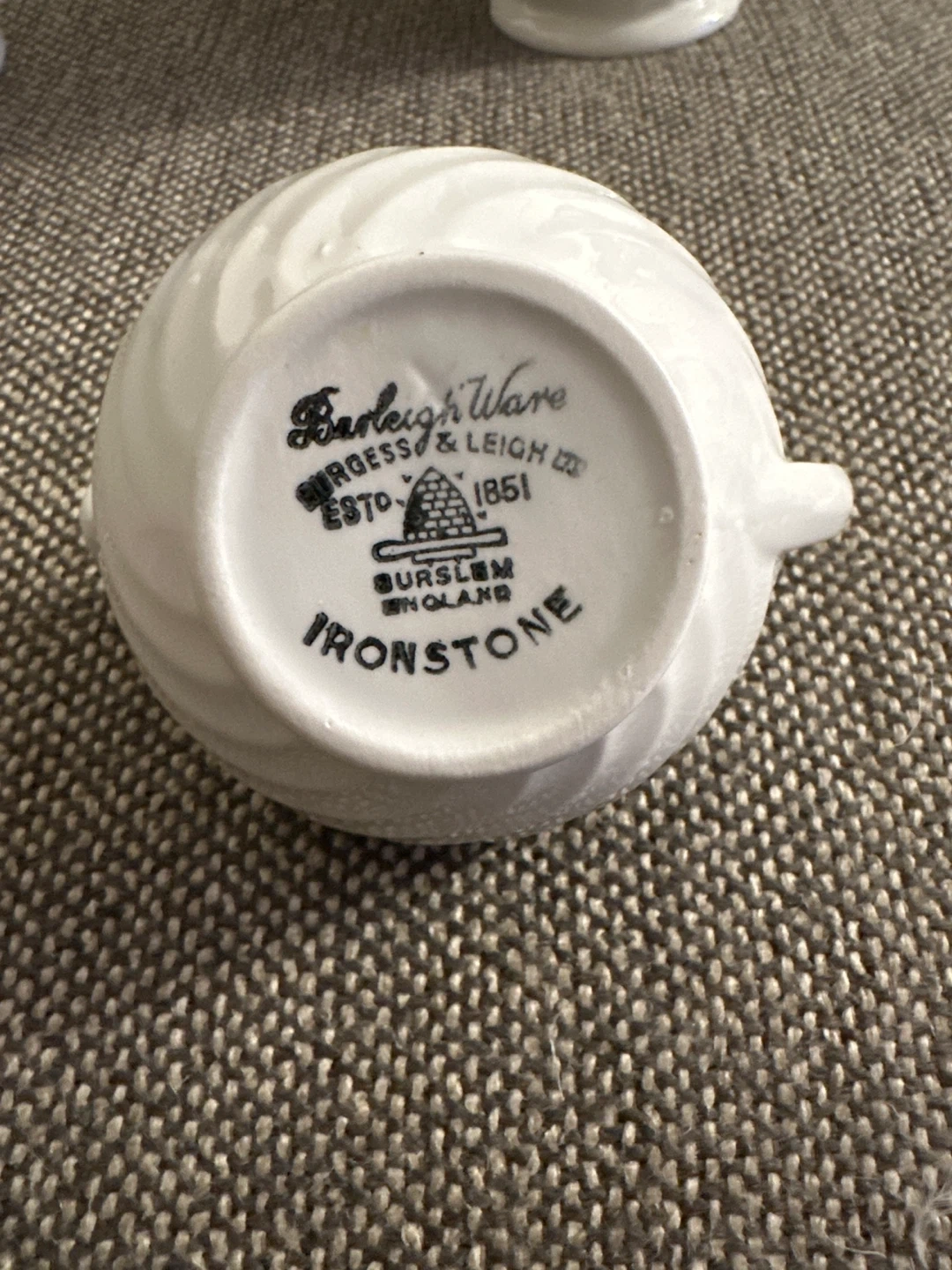 Selling a lovely Burleigh Ware teapot set by Burgess & Leigh. The set is made of ironstone and features a beautiful, swirled design. It includes a teapot, creamer, and sugar bowl. Perfect for tea lovers!