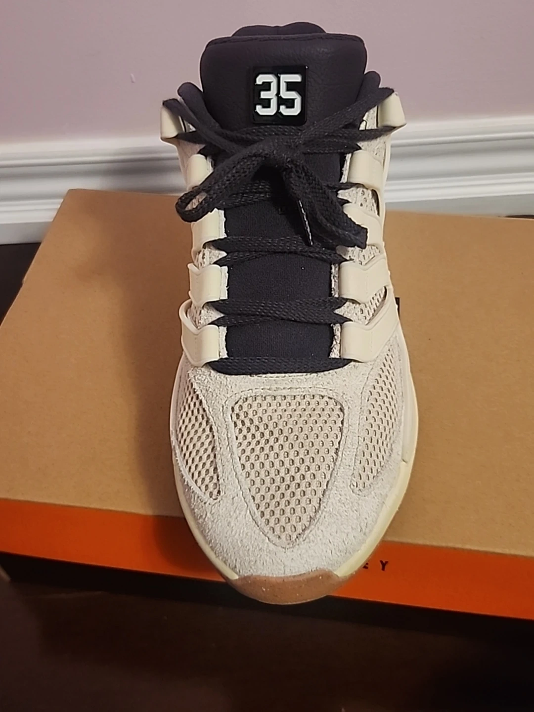 This KD18 LE features a clean Sanddrift / Soft Pearl colorway—subtle, versatile tones that fit both on-court performance and everyday wear. Worn once indoors on one side of shoe tiny lose threads (barely noticeable), and very minor creasing. I have video if you like to see more.