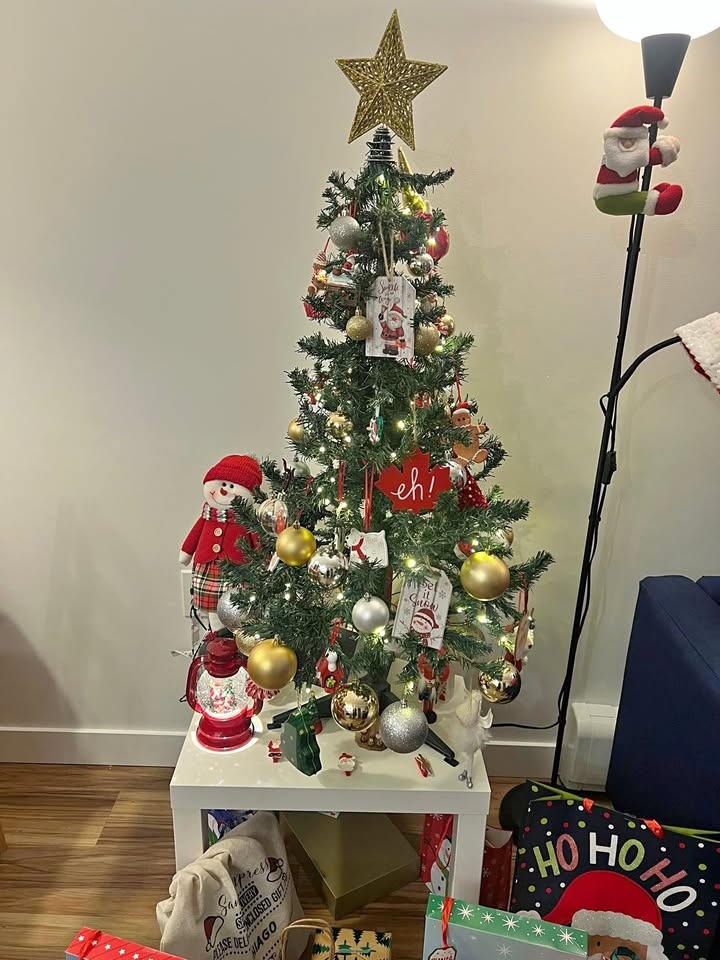 It comes without decorations though, only the original pre-wired Christmas lights.