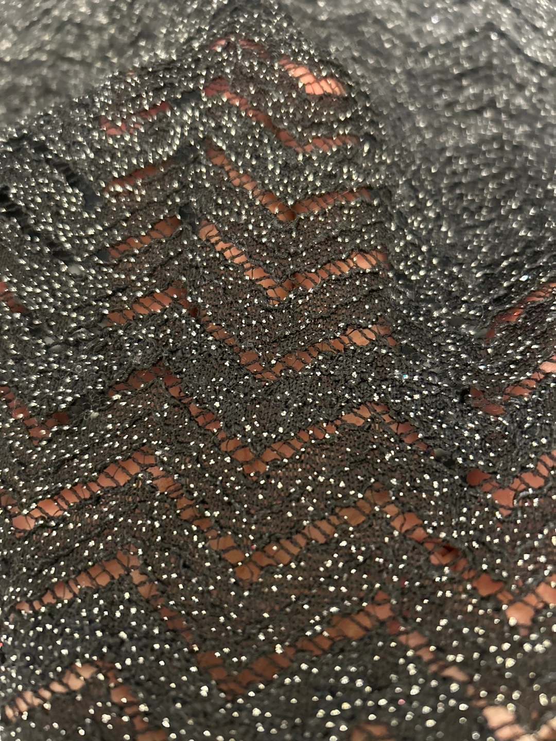 Here's a lovely sparkly sleeveless dress! It's in great condition and perfect for a night out or special occasion. like X-mad parties. The dress has a unique chevron pattern and a shimmering effect. Size is medium-large.