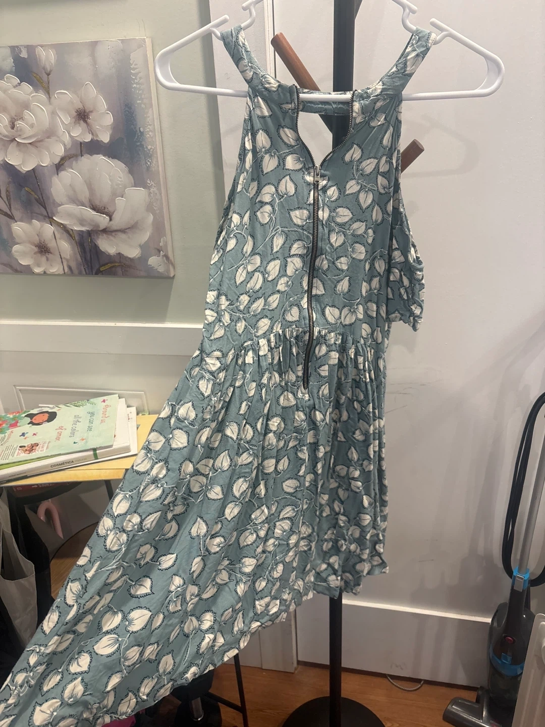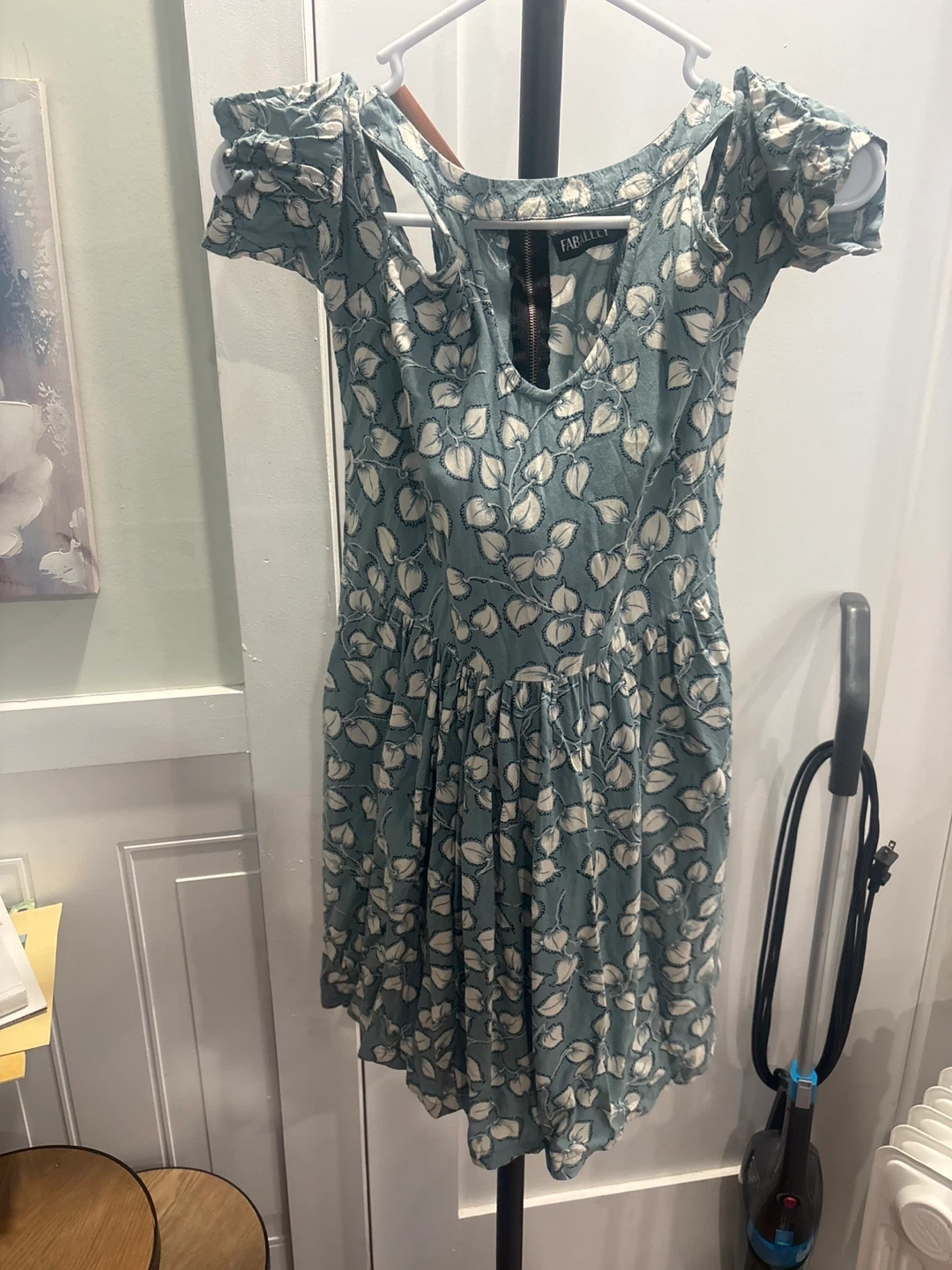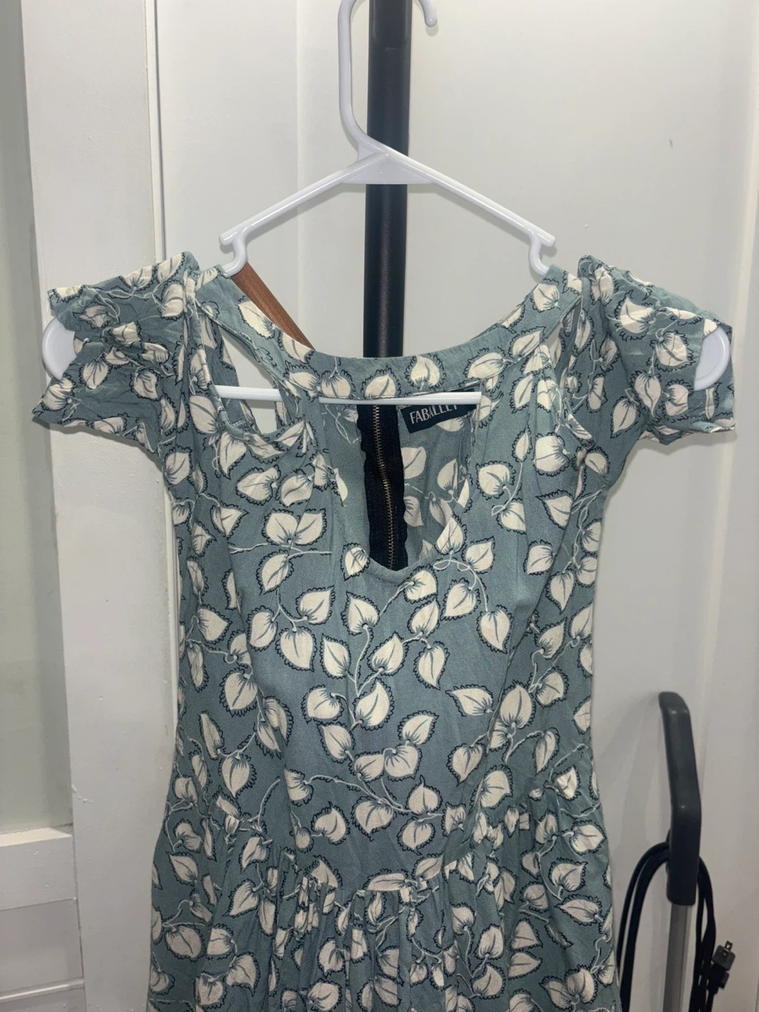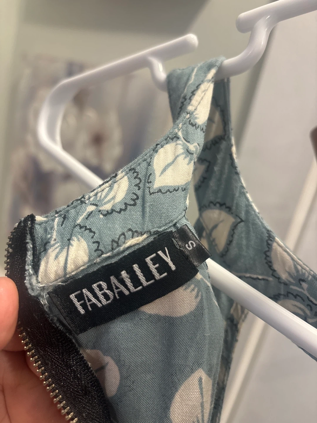 Here's a cute Faballey dress in size S! It features a lovely leaf pattern and a zipper down the back. Perfect for a casual day out or a summer event