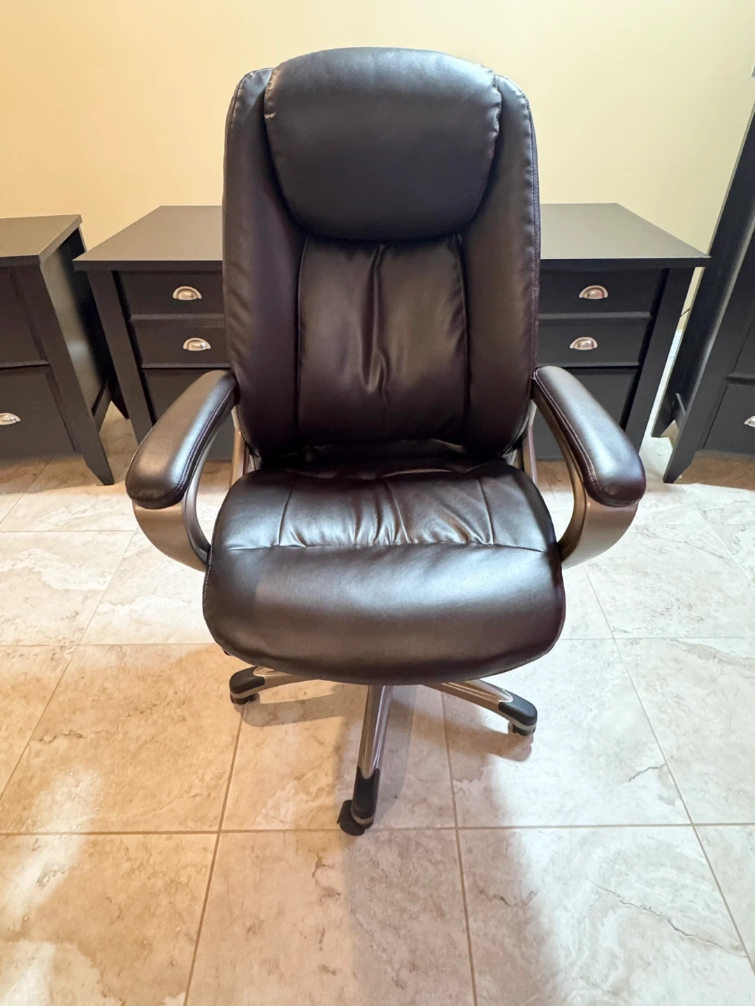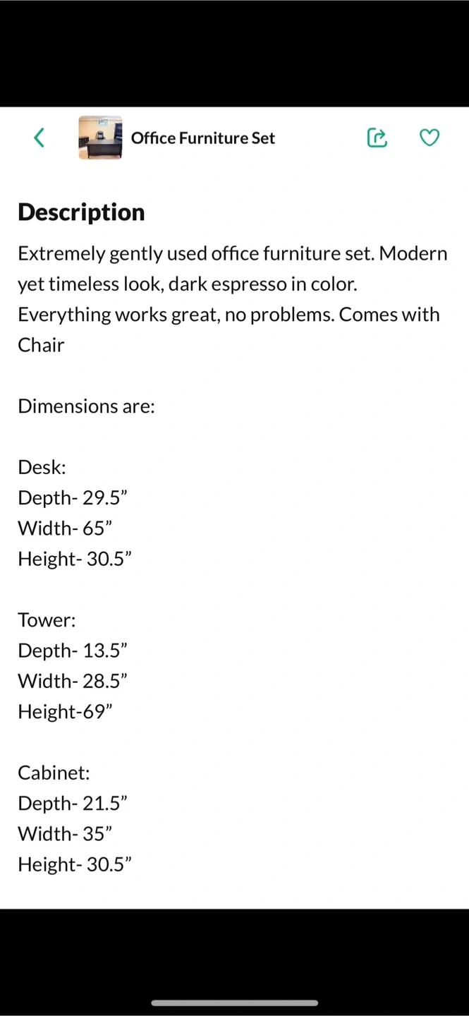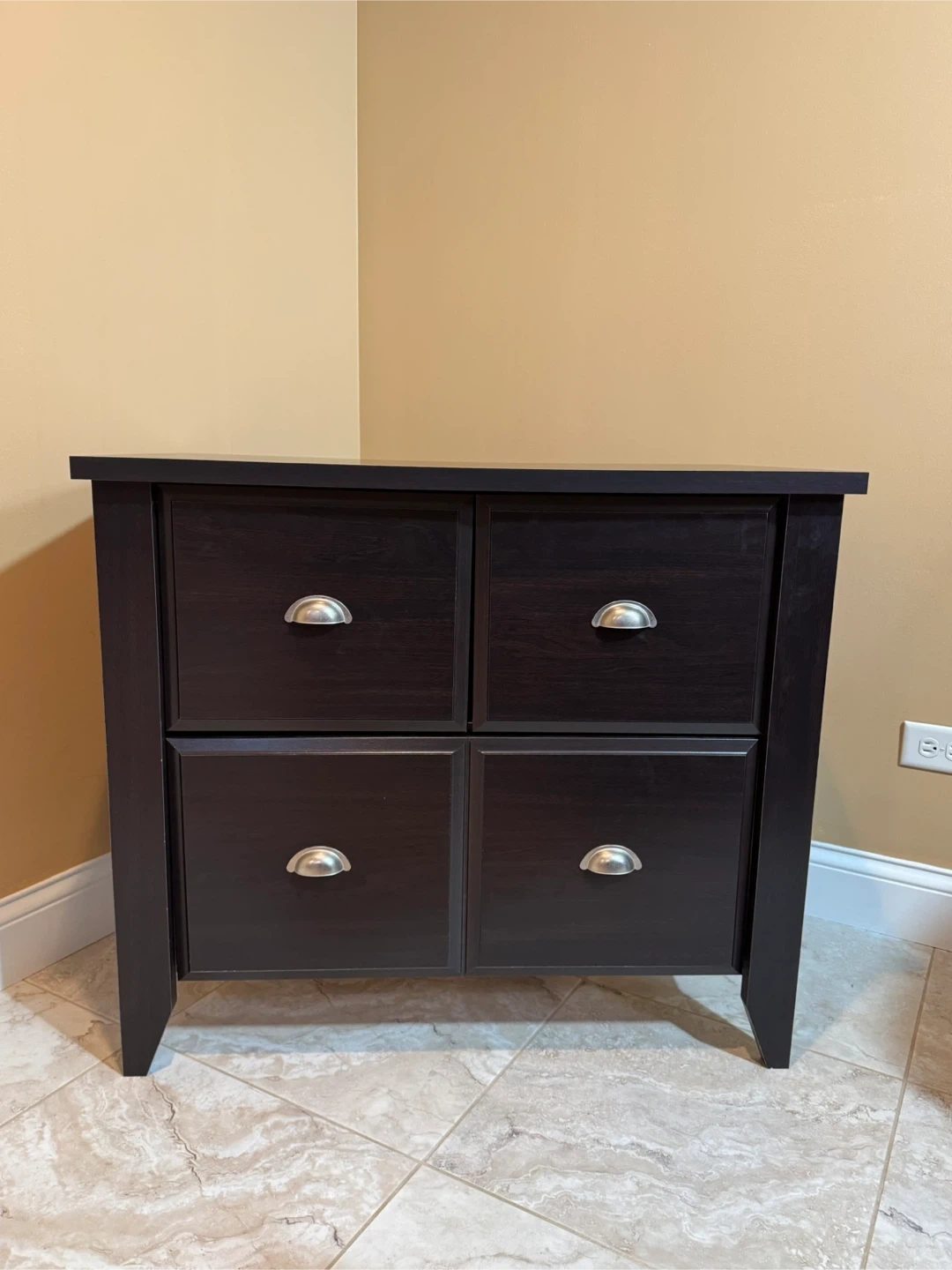 Selling a dark brown wooden desk, bookcase, and filing cabinet set. The desk has multiple drawers for storage, and the bookcase also includes drawers at the bottom. It's a great set for a home office or study area