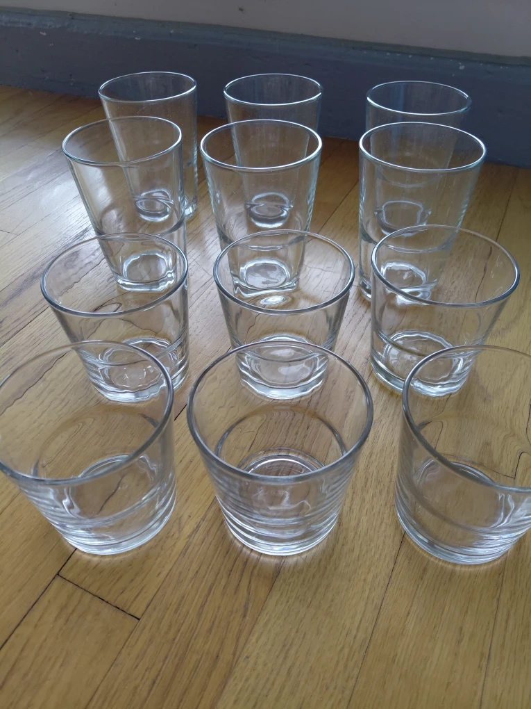 6 tall tumblers - 16.4 fl oz each 6 short tumblers - 12.8 fl oz each Durable, stackable glassware made for everyday use Brand new