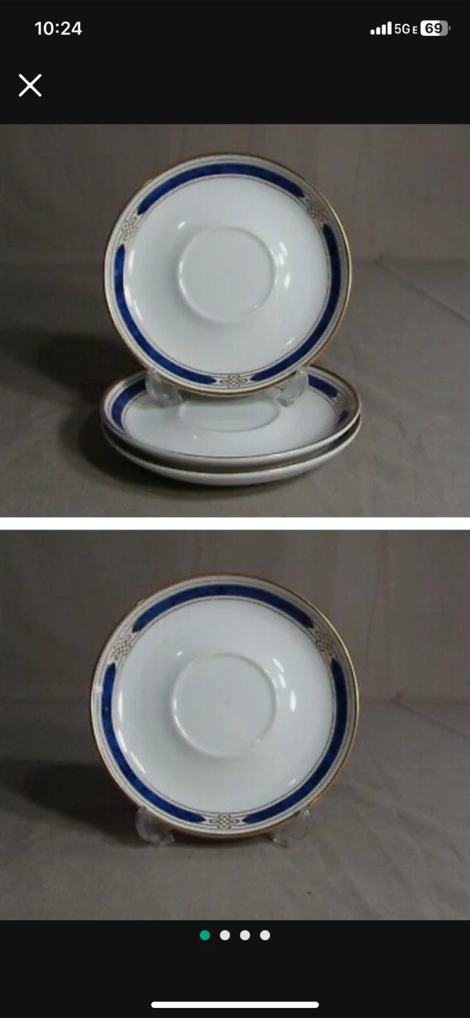 Selling Gorham Regalia Court Lapis saucers! These fine china saucers are decorated in the USA and have a beautiful design. Perfect for adding a touch of elegance to your table setting
