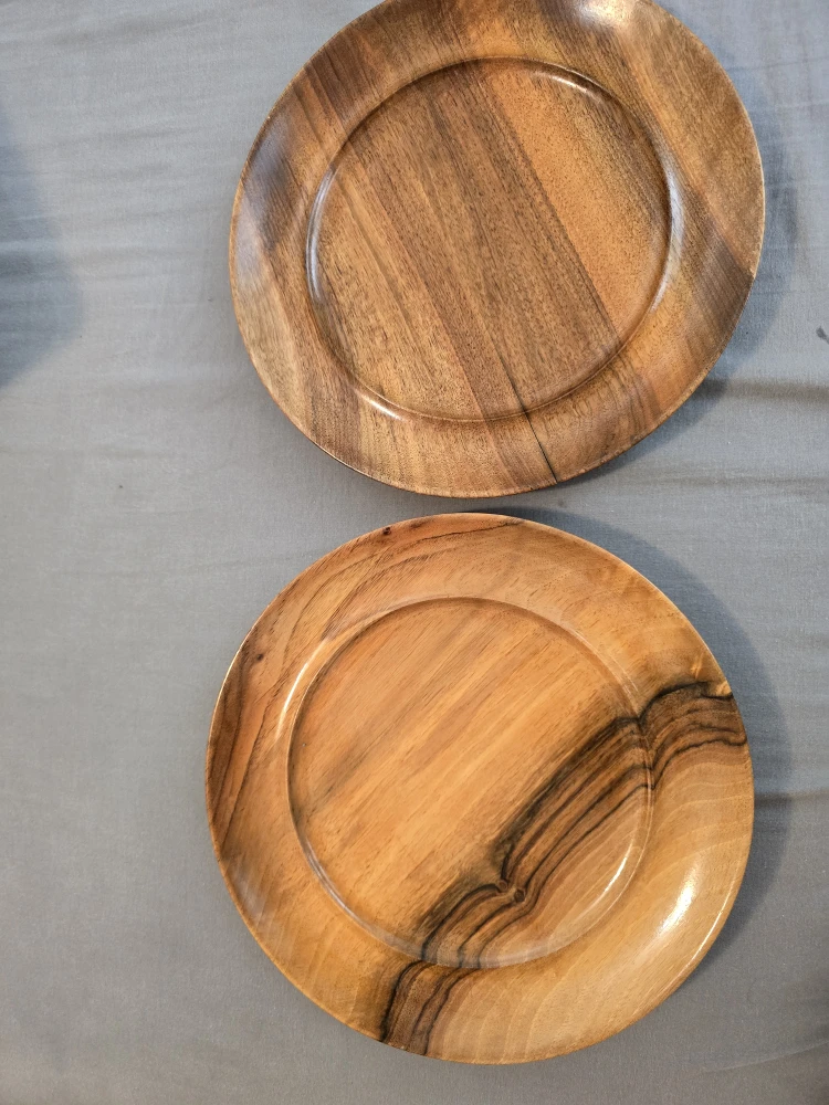 Selling a set of wooden plates. They have a beautiful natural wood grain. Please see photos for condition