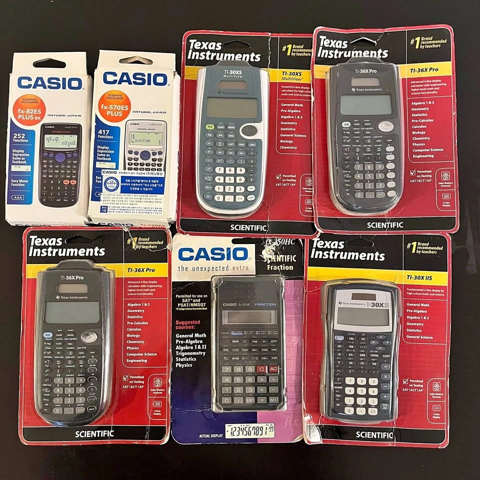 Lot of 7 New Scientific Calculators - Texas Instruments & Casio