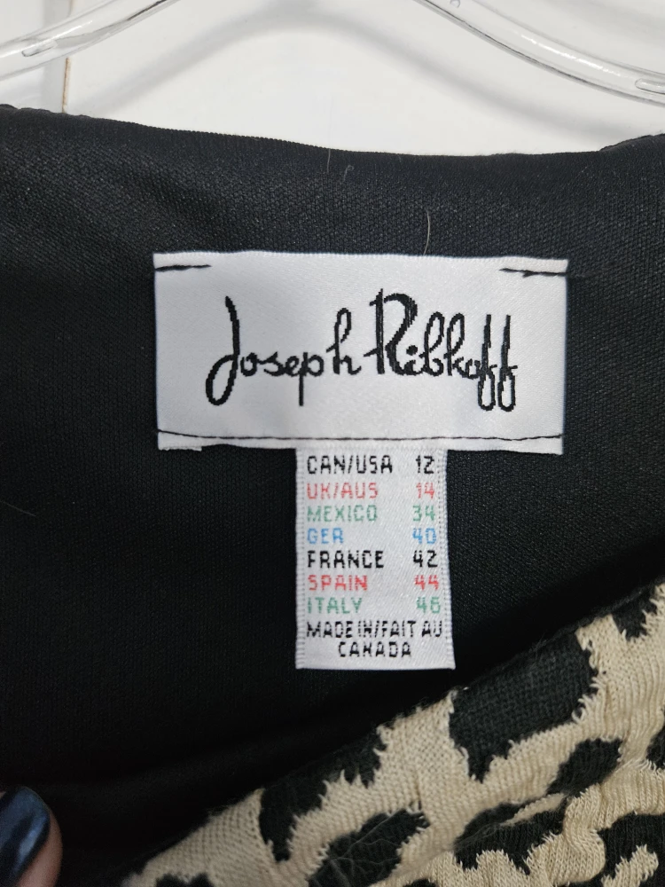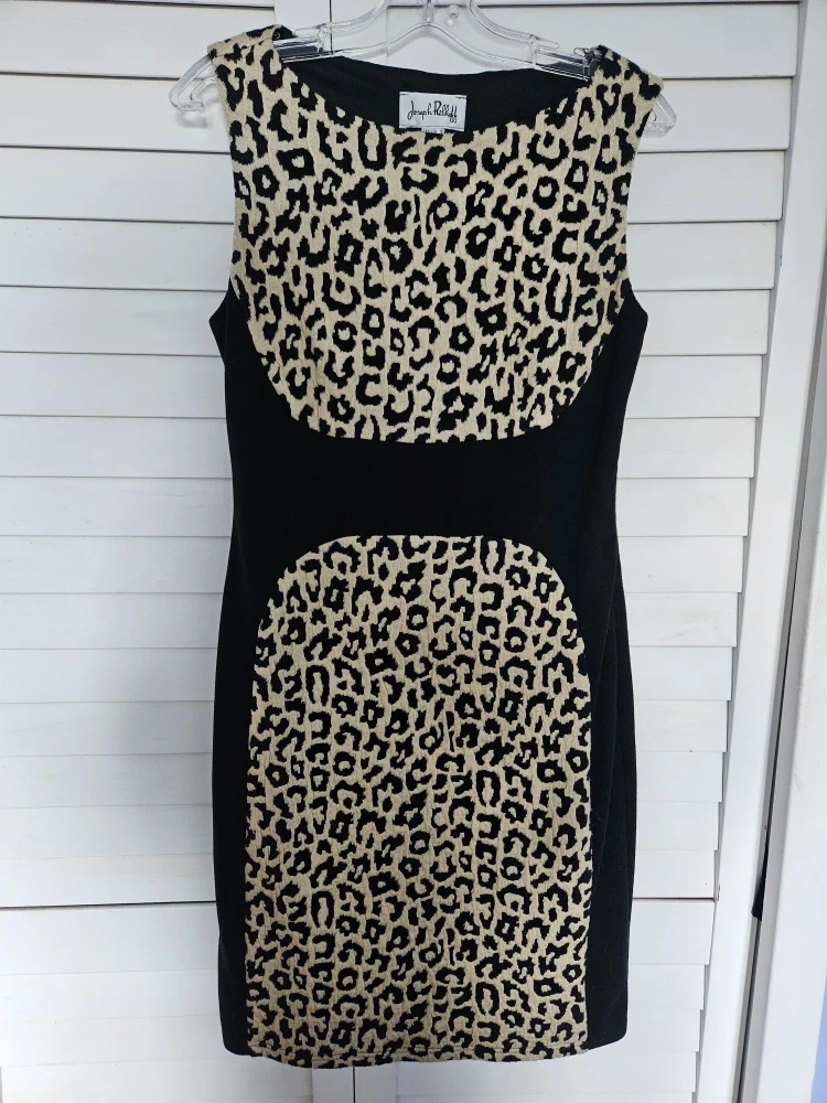 Selling a Joseph Ribkoff dress in size 12. It features a stylish black and leopard print knit bodycon design. Perfect for any occasion!