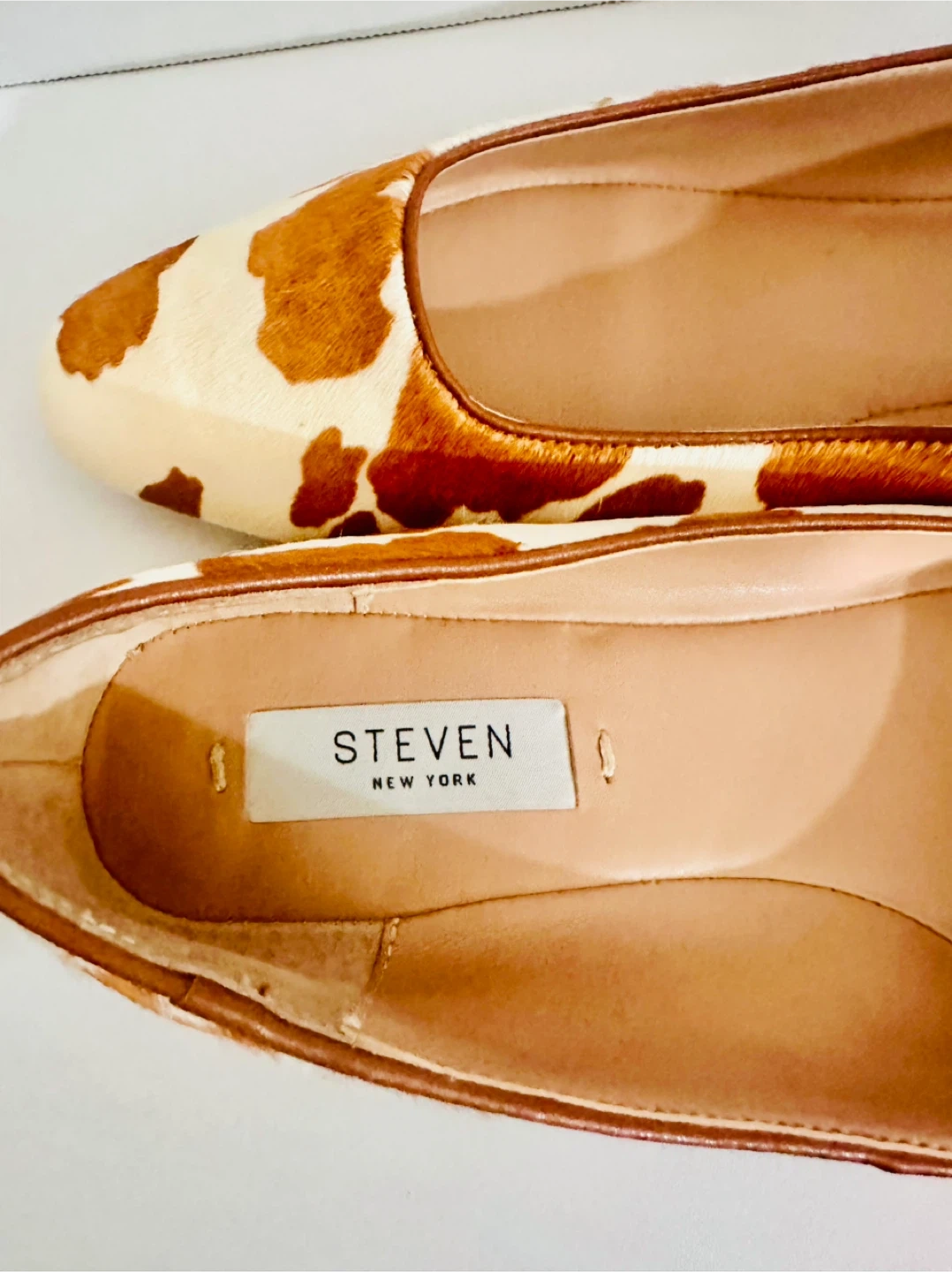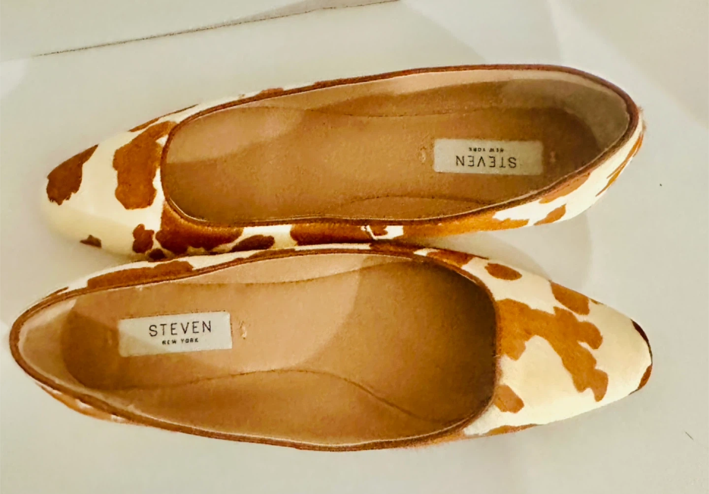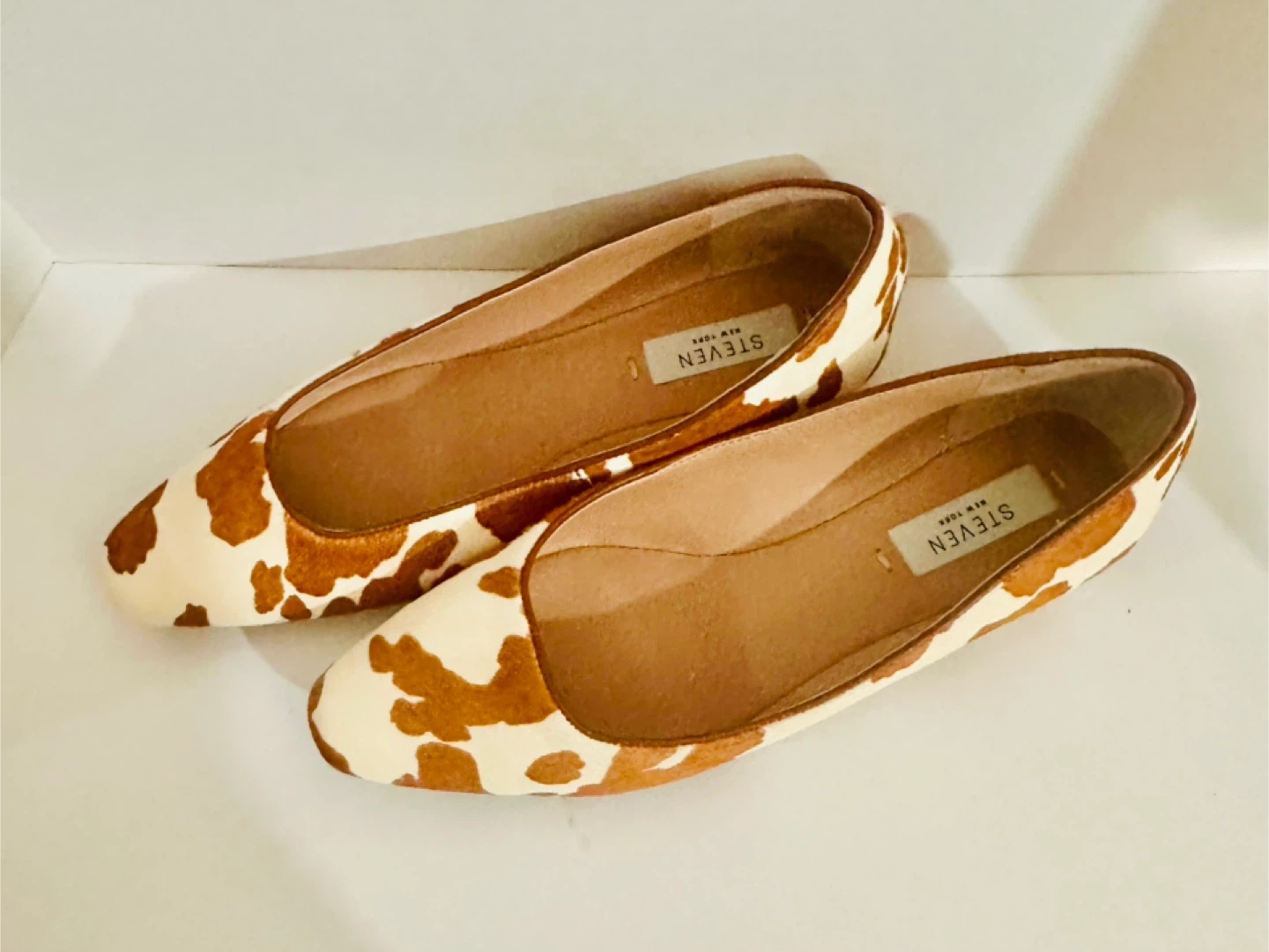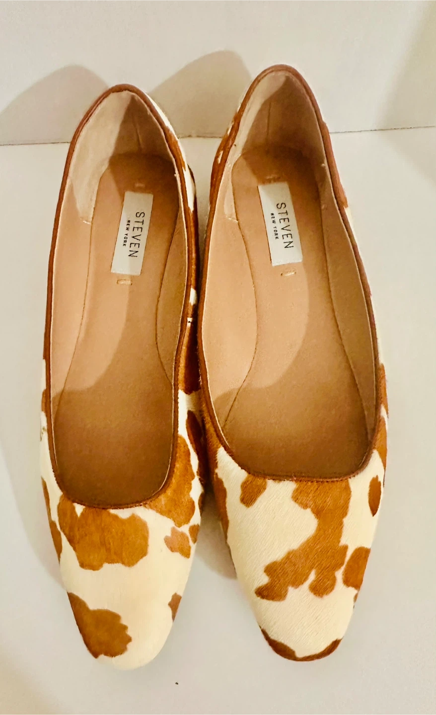 Cute Steven New York flats with a fun cow print! They're in brand new condition and very comforttable!