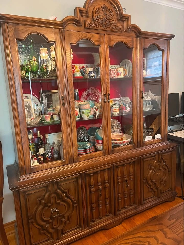 Glass hutch very detailed , etched glass detail pristine condition Smoke and pet free home. Well taken care of over the years.
