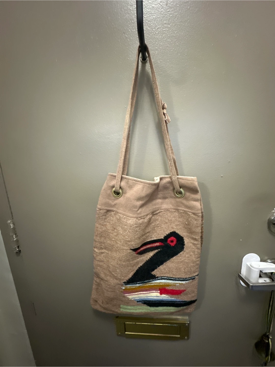 This is a unique, handmade shoulder bag with beautiful embroidery. It's in great condition and ready for a new home!