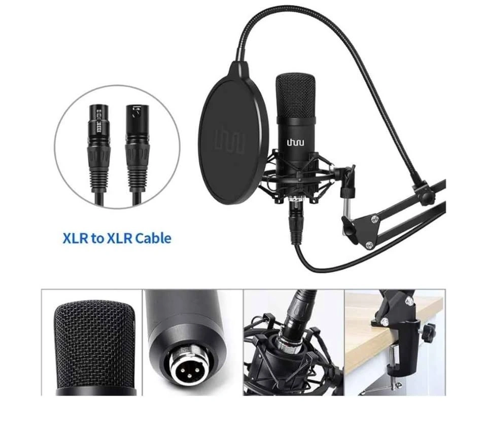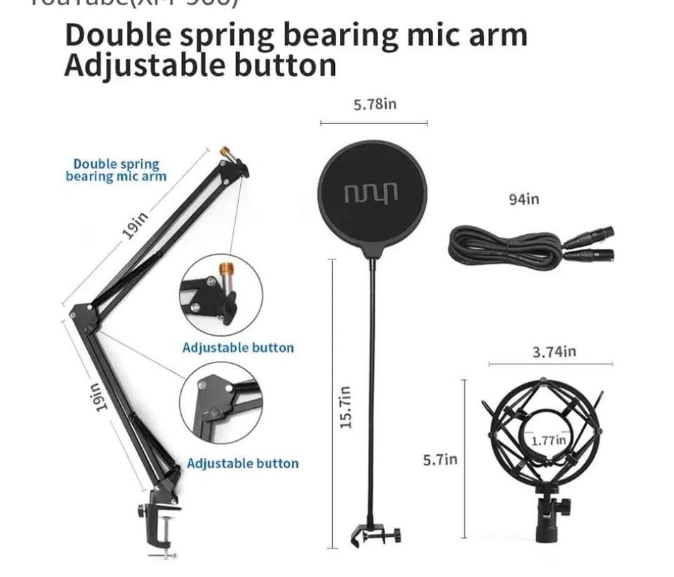 Record crystal-clear audio with this UHURU XM-900 condenser studio microphone set! This used microphone is perfect for podcasting, streaming, or recording music. The set includes the microphone, adjustable scissor arm stand, shock mount, pop filter, and all necessary cables.