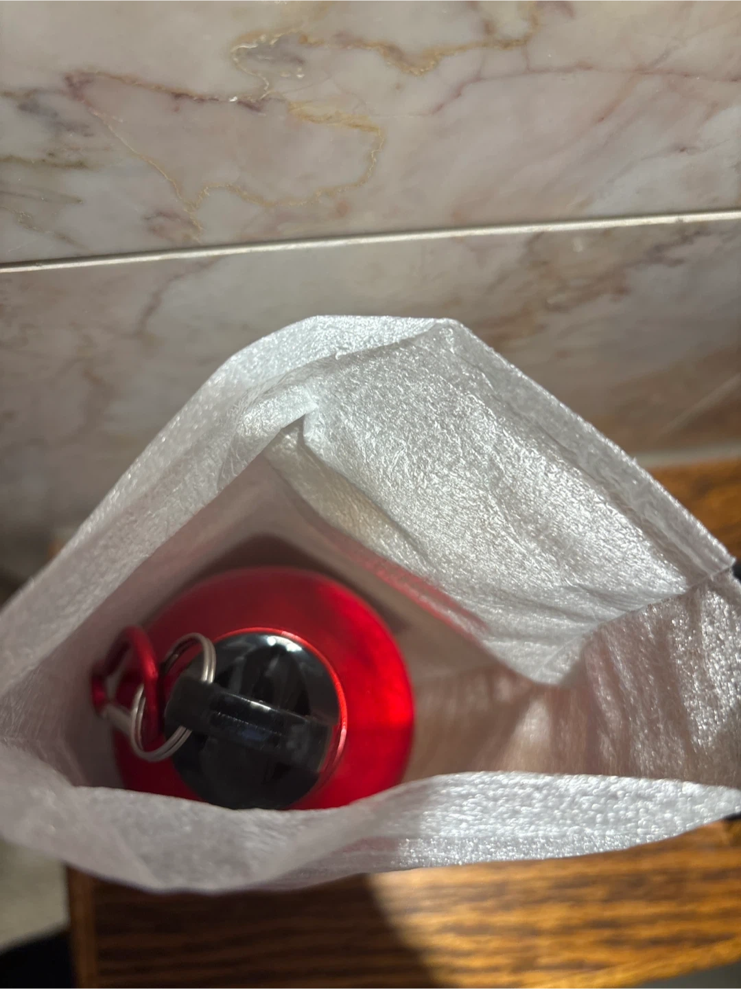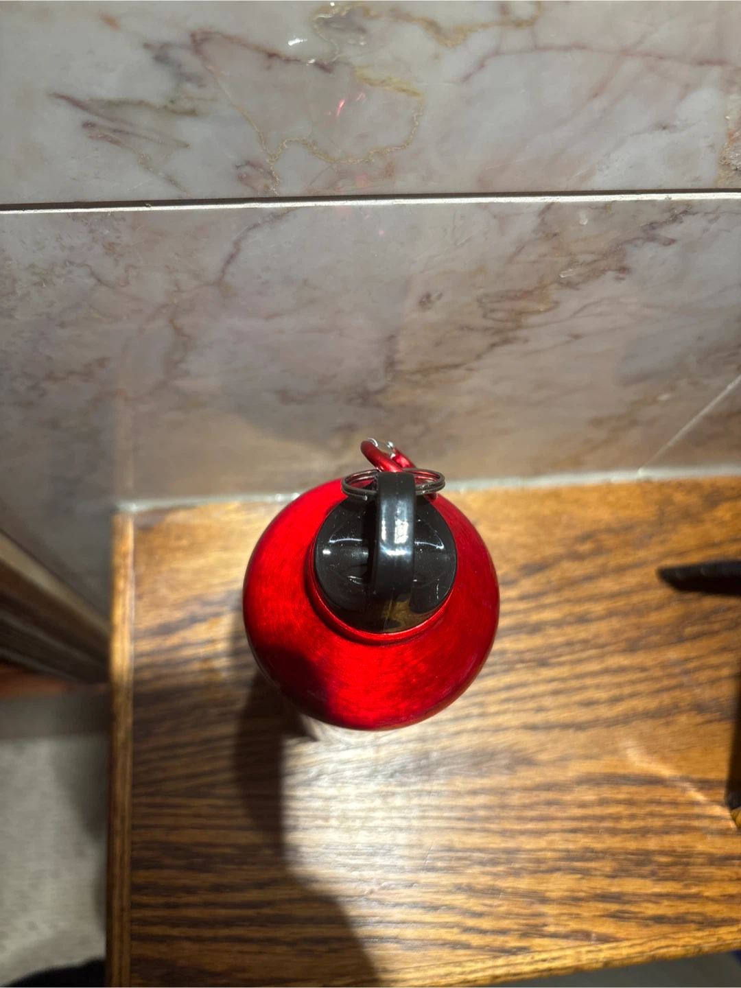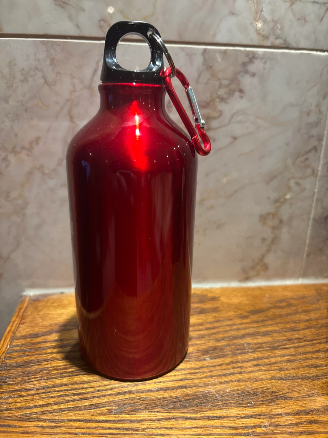 I'm selling a red water bottle from the 75th Canadian International Air Show (1949-2024). It has a carabiner attached to the lid. Never used