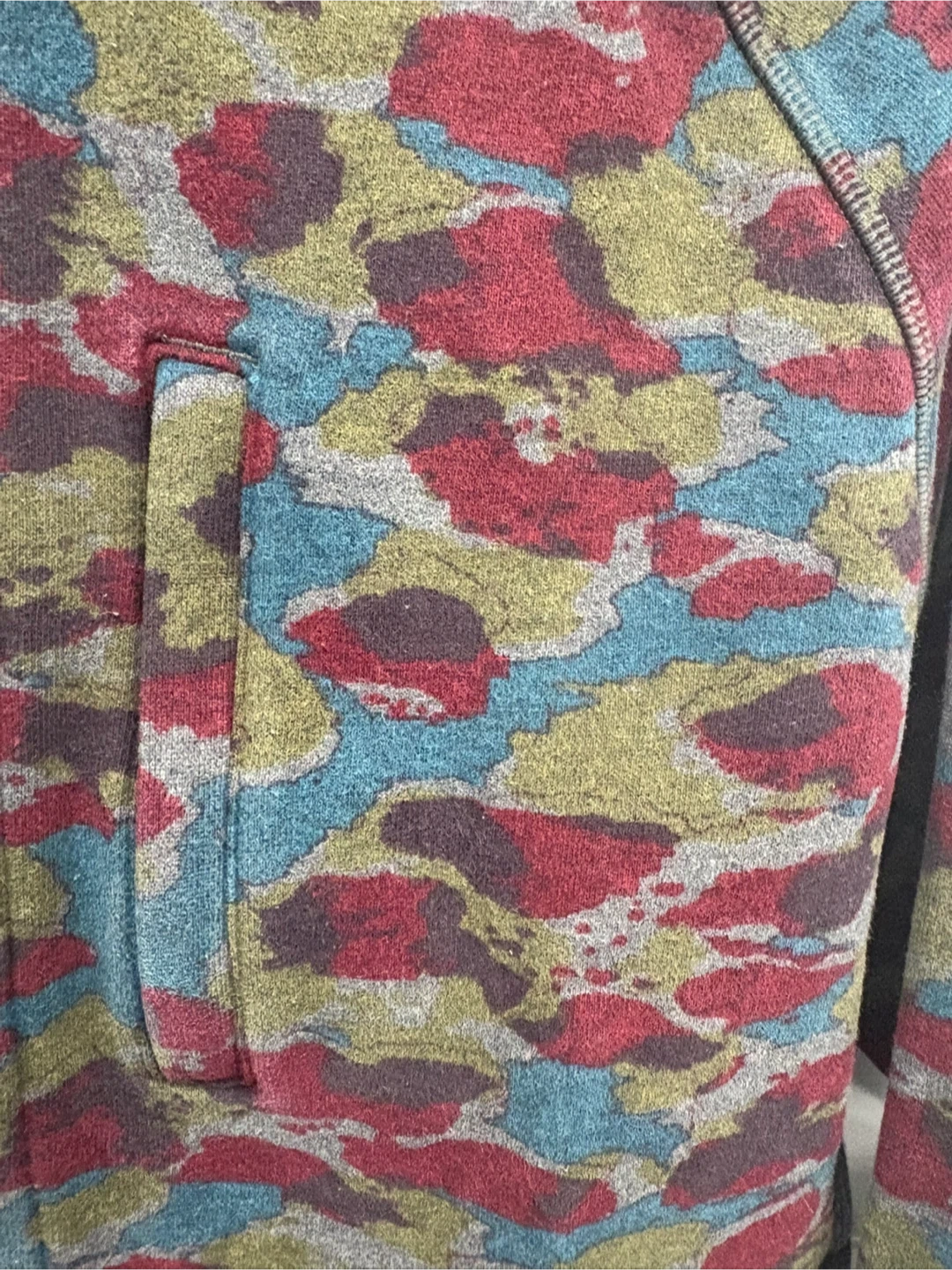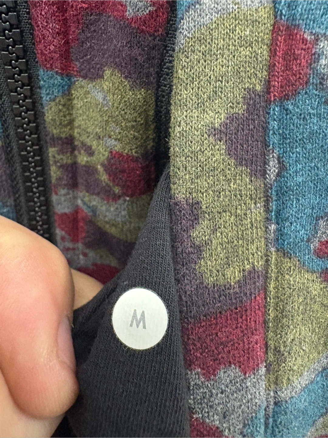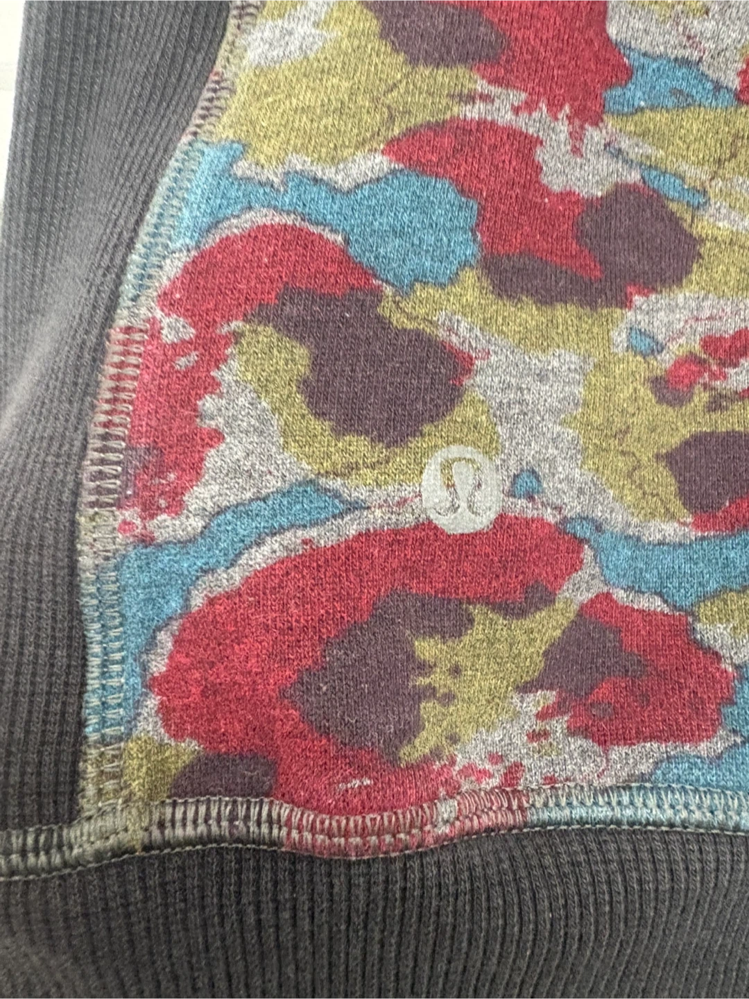I'm selling a Lululemon full zip hoodie! It has a unique pattern with red, blue, and yellow. It's in great condition and ready for a new home. scuba model medium excellent condition
