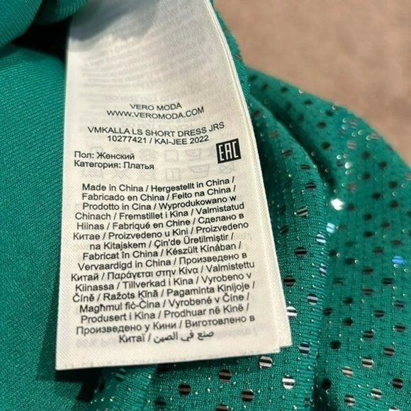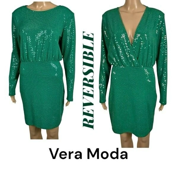 Cleverly designed VERA MODA Green Sparkle Reversible Dress (Reversible: not inside out, but front to back) with Sewn-In Shoulder Pads is in excellent condition. Good stretch.