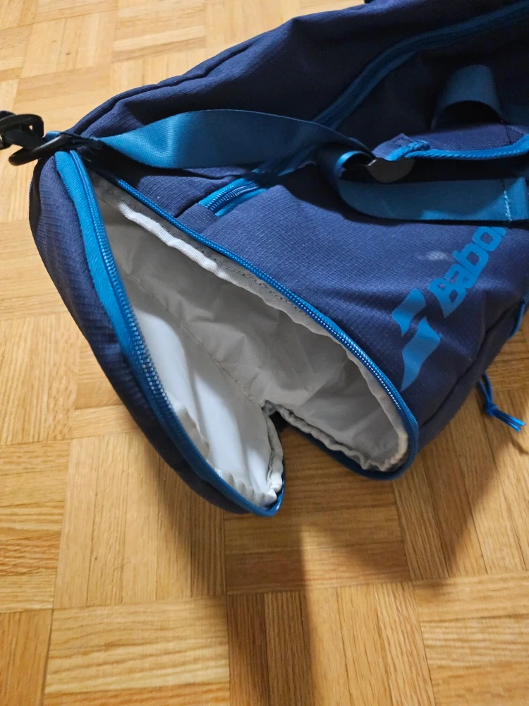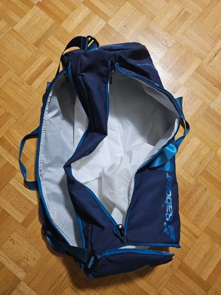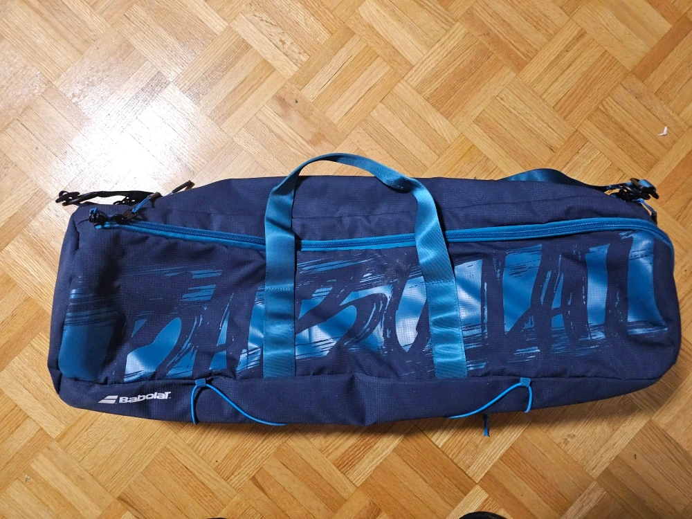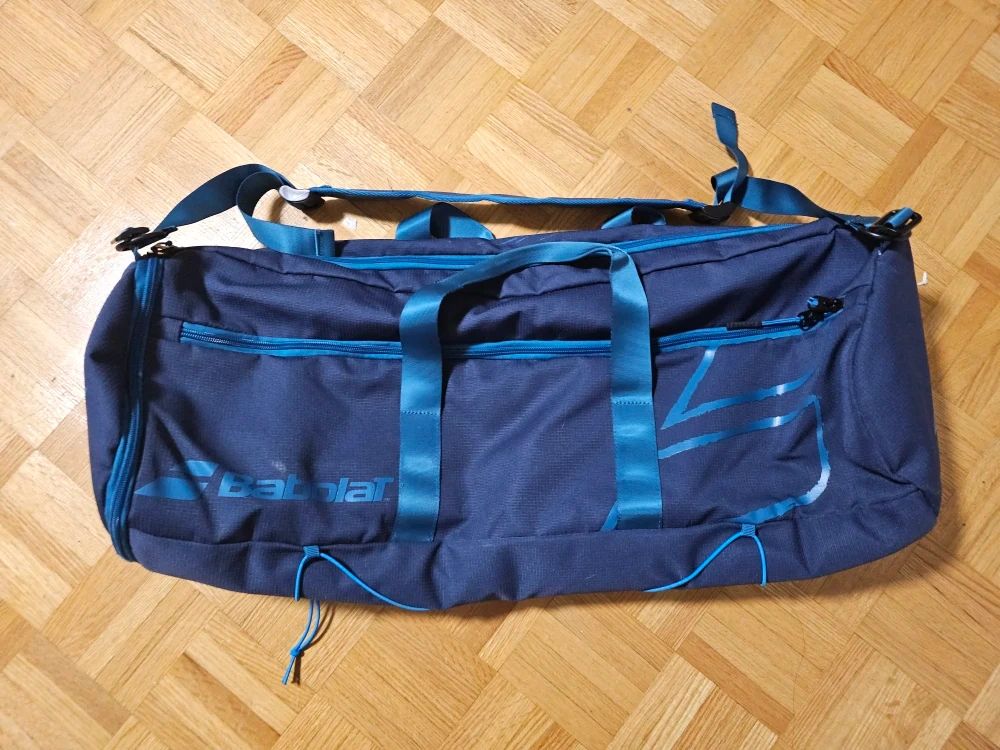 Babolat Duffle bag. Good for holding all your badminton gear or use as a gym bag. Can hold up to four racquets, a shoe compartment, and an inner zip pouch to hold accessories.