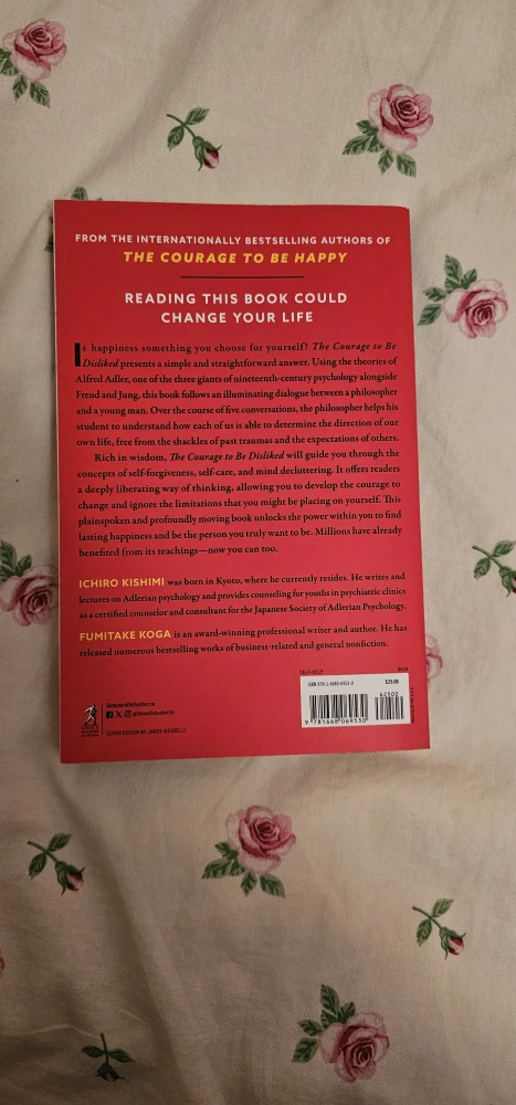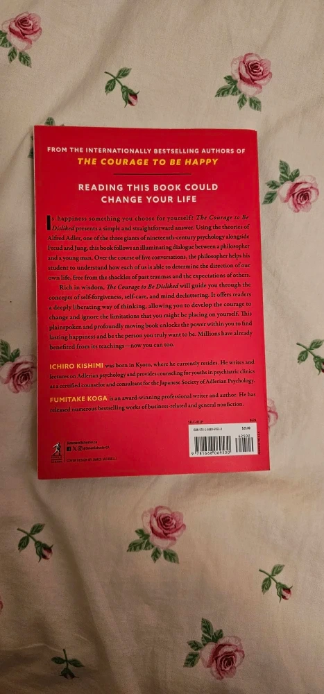 Selling "The Courage to Be Disliked" by Ichiro Kishimi and Fumitake Koga. It's a Japanese phenomenon that shows you how to change your life and achieve real happiness. A thought-provoking read!