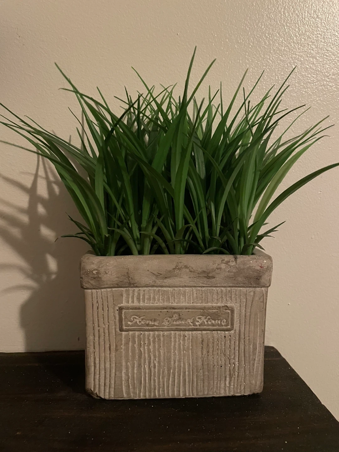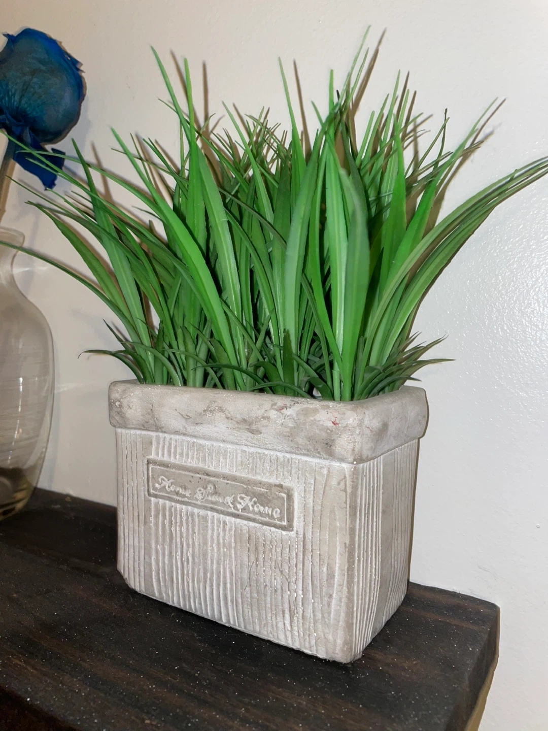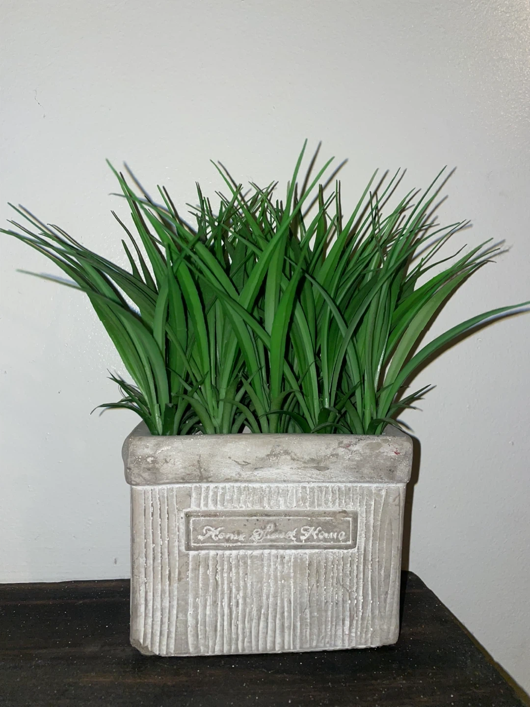 Add a touch of greenery to your home with this artificial grass in a decorative pot! The pot features a "Home Sweet Home" design, adding a cozy vibe to any space. Perfect for shelves, desks, or windowsills.