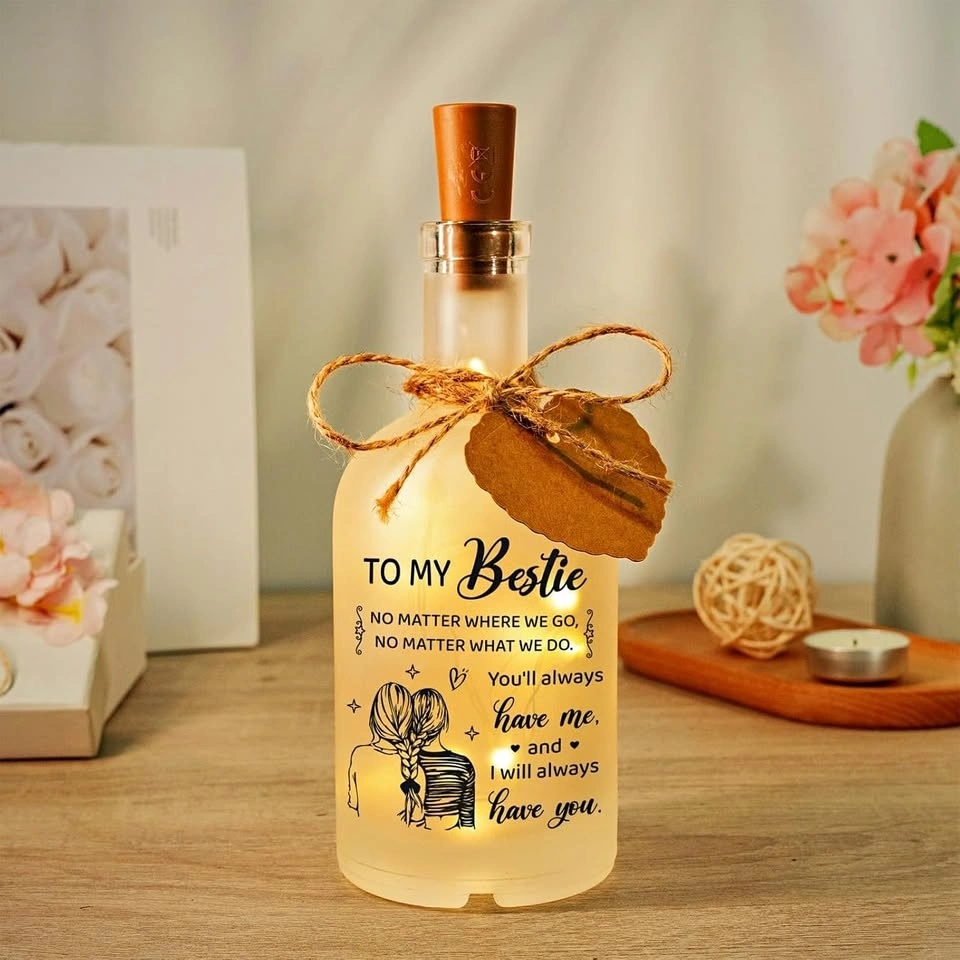 NEW~Night Light Frosted Glass Bottle Gift w/ LED Lights