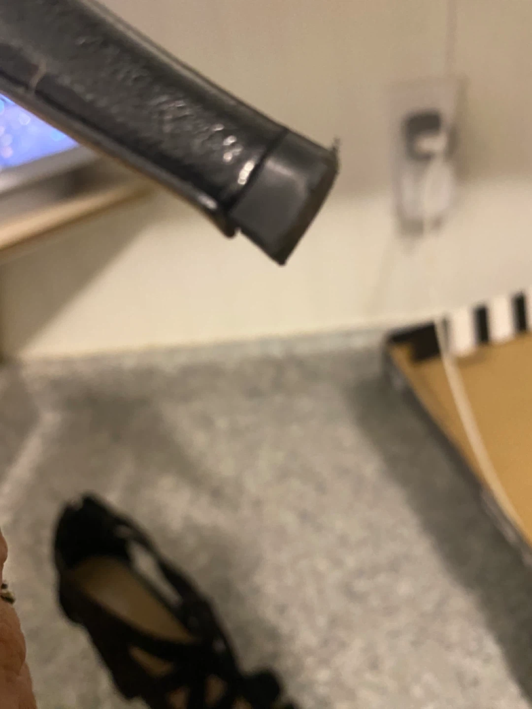 Photos are shown , shoes are actually brand new had an event. The summer was hot and the driveway was very very hot so it put a mark on the sole part. Other than that they are like brand new.