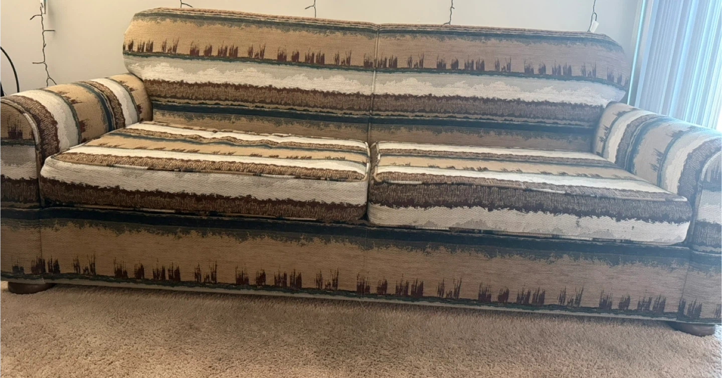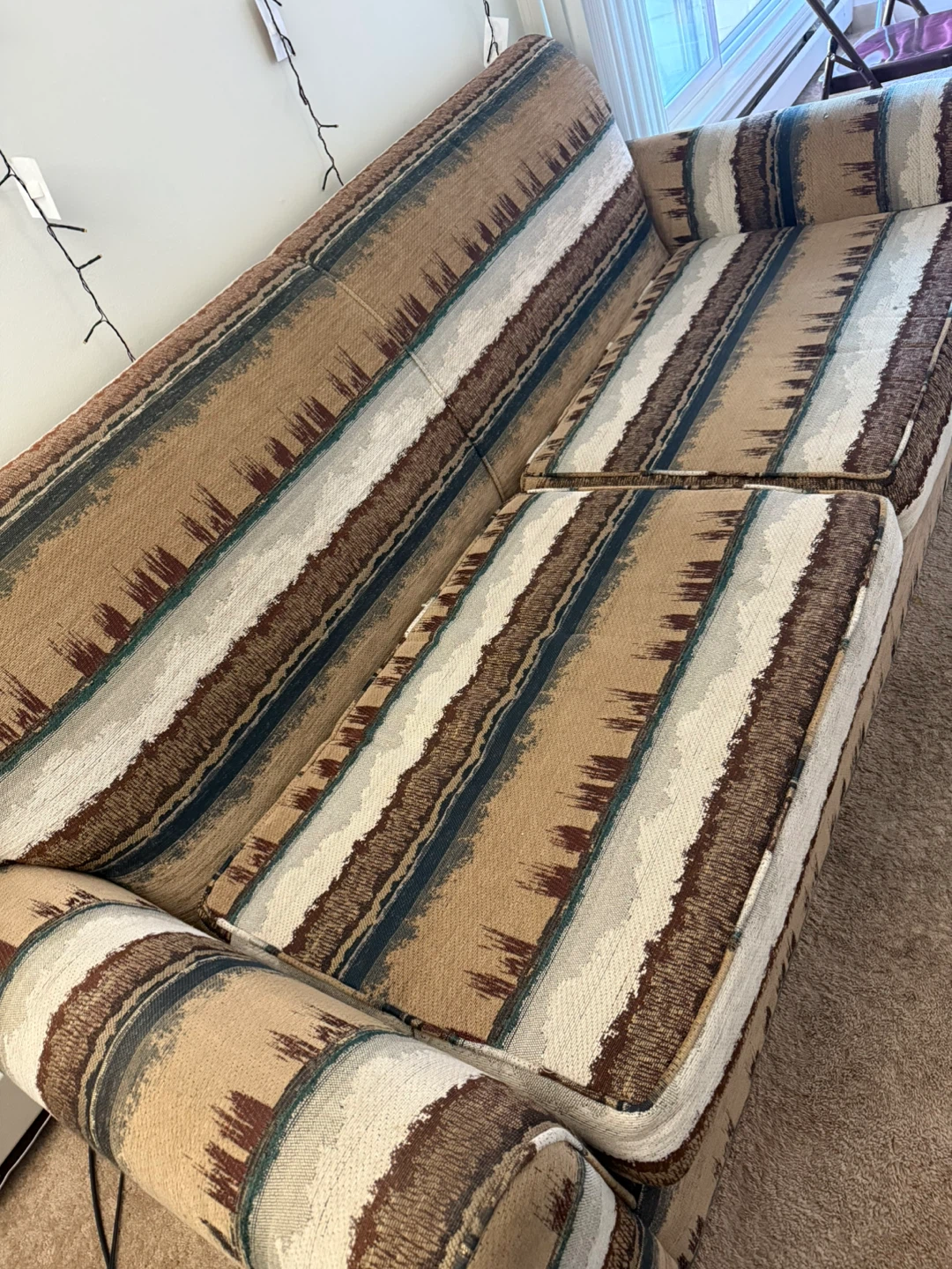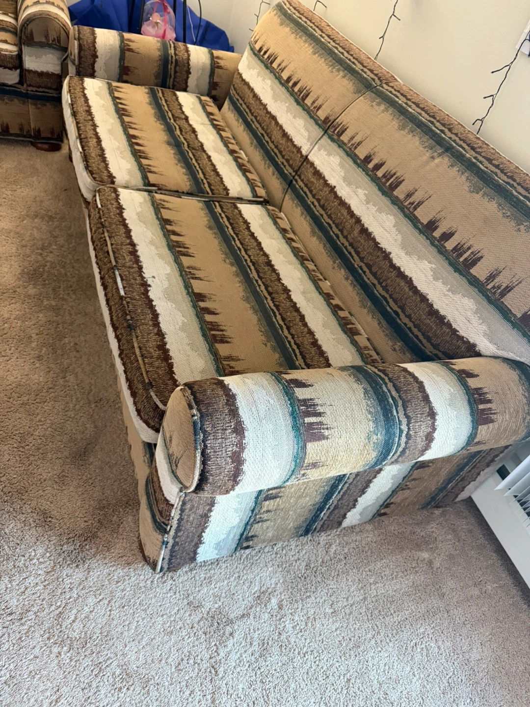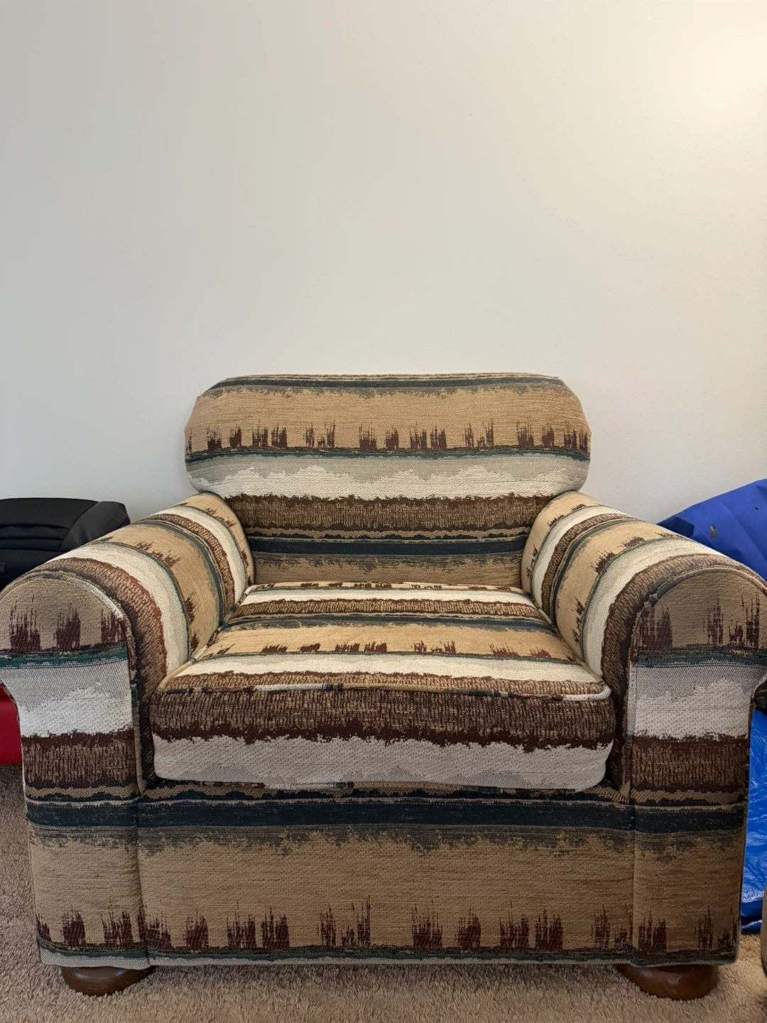 Selling a comfy sofa and matching armchair set! They're in good condition and would look great in any living room or den