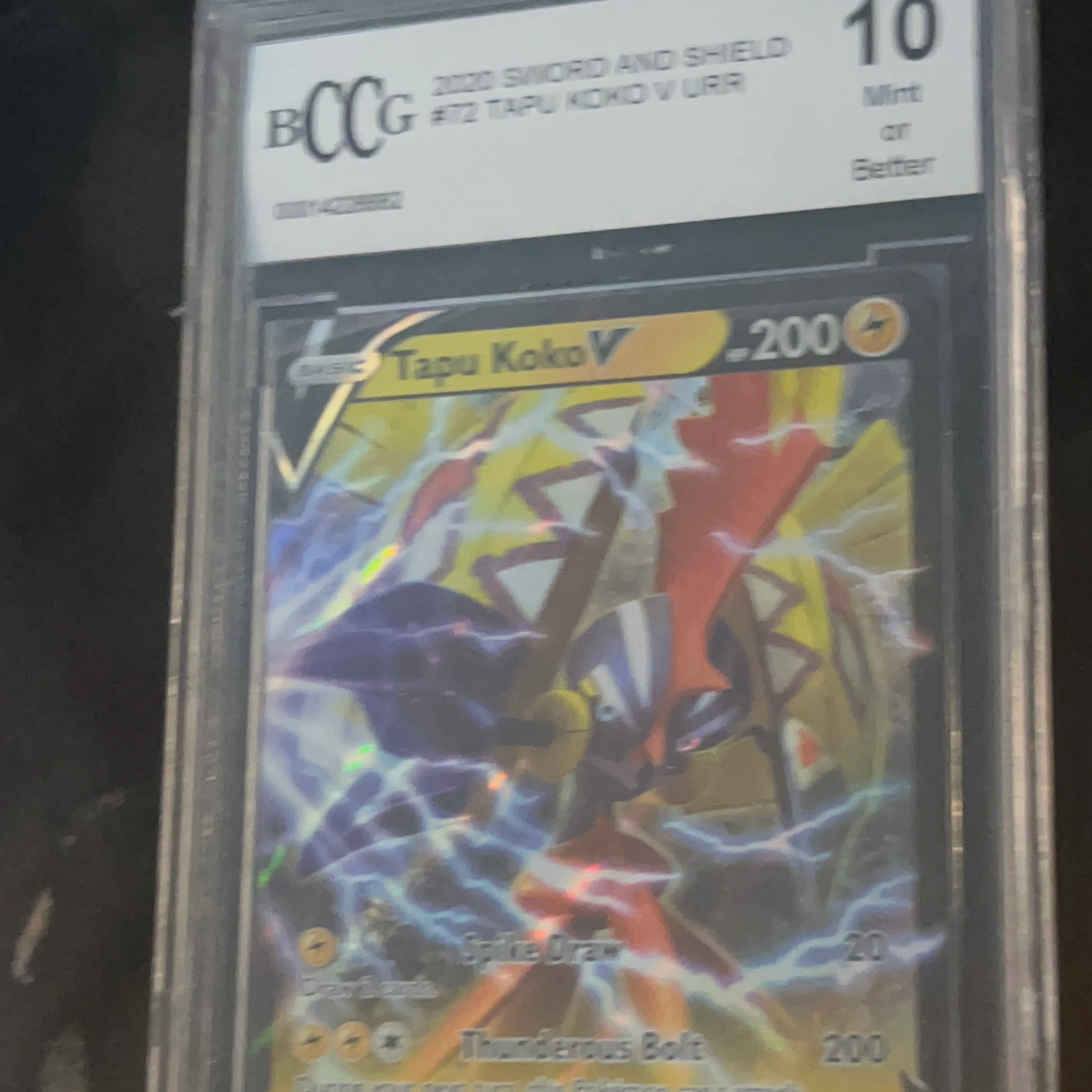 Selling a mint condition Tapu Koko V URR Pokemon card from the 2020 Sword and Shield series! It's graded a 10, so you know it's in great shape. A great addition to any collection!