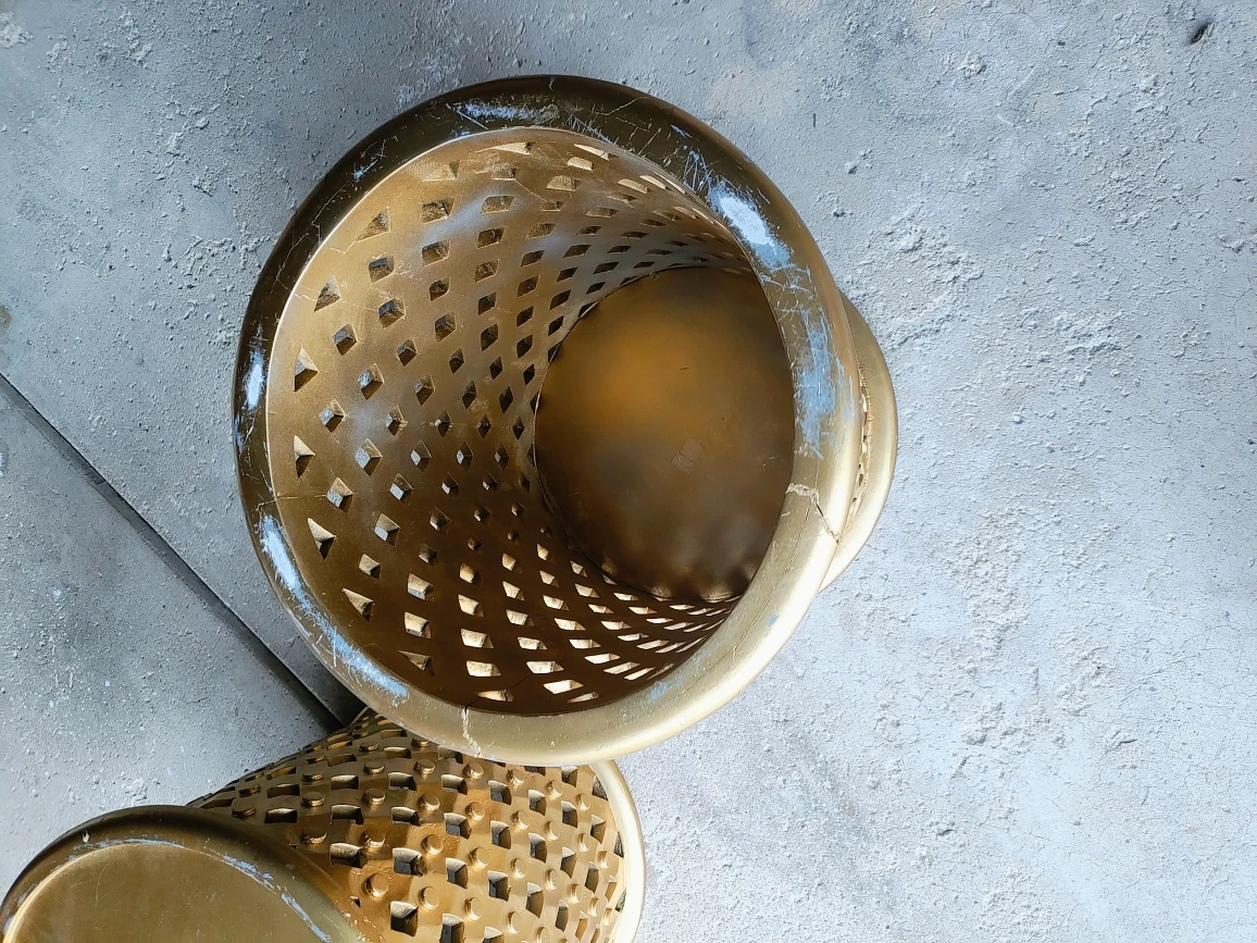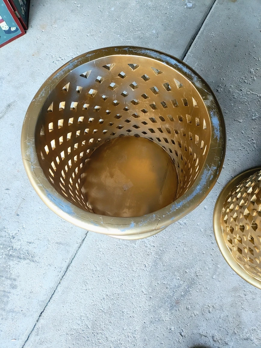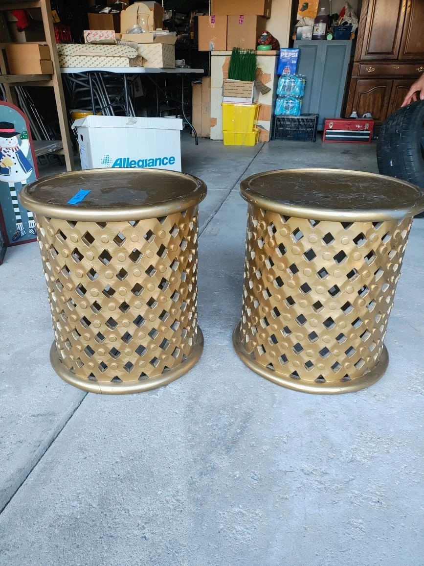 Selling a set of two gold accent tables. They have a unique, decorative design with a lattice pattern. Perfect for adding a touch of elegance to any room! (Could use a paint job as the tops are scratched) Cash only pick up only