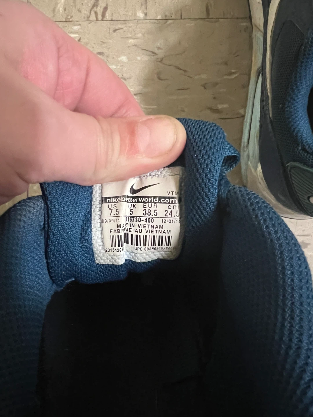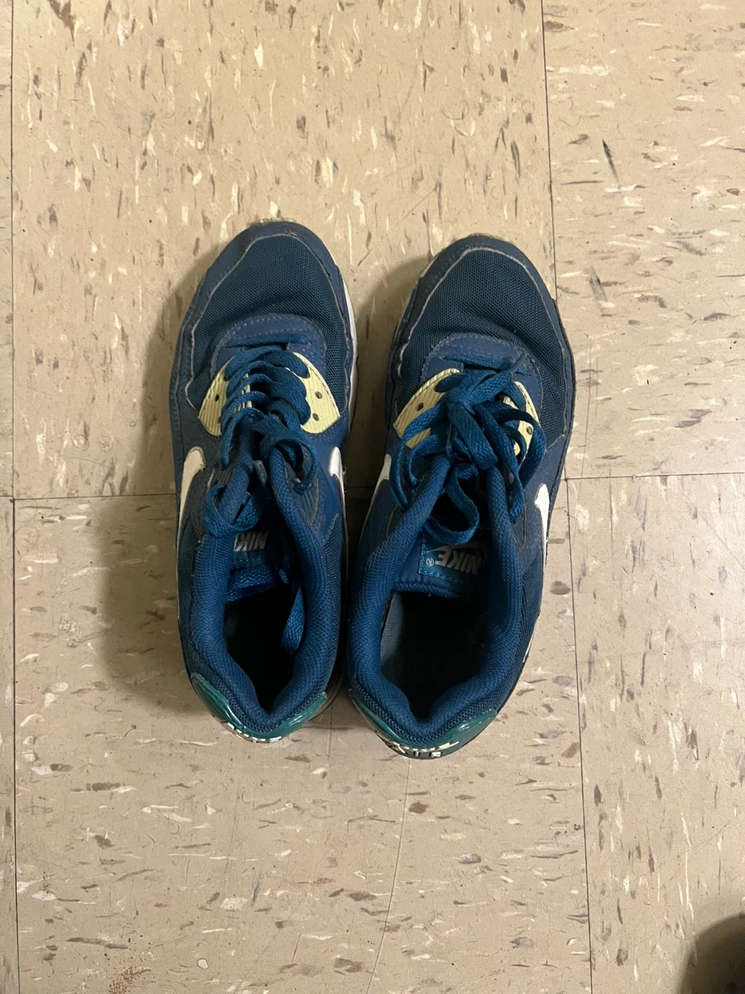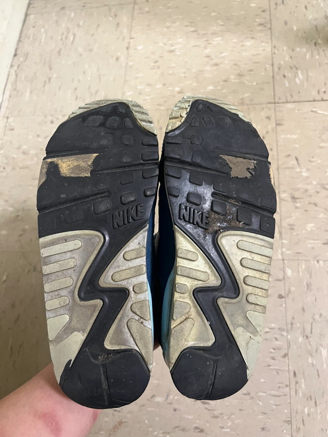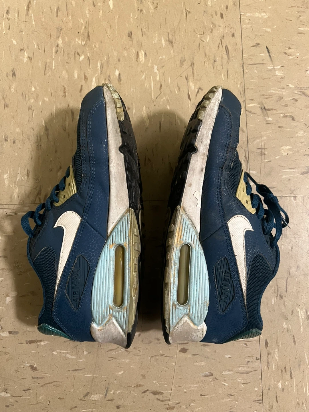 Pre-loved pair of size 7.5W/6M Nike Air Max 90 SE “Binary Blues” from 2014 that were repainted and cleaned a whileee ago so they’re peeling. They were my moms so there’s some sentimental value w them for me too so I’m kinda firm on price