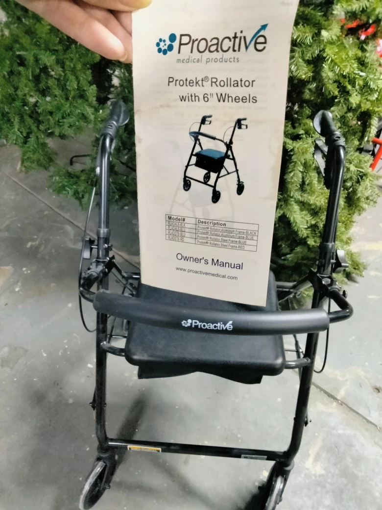 Selling a Proactive Medical Protekt Rollator with 6" wheels. It's ready to assist you or your loved one! The rollator features a seat and a convenient storage area underneath. It's perfect for anyone needing a little extra support while walking.