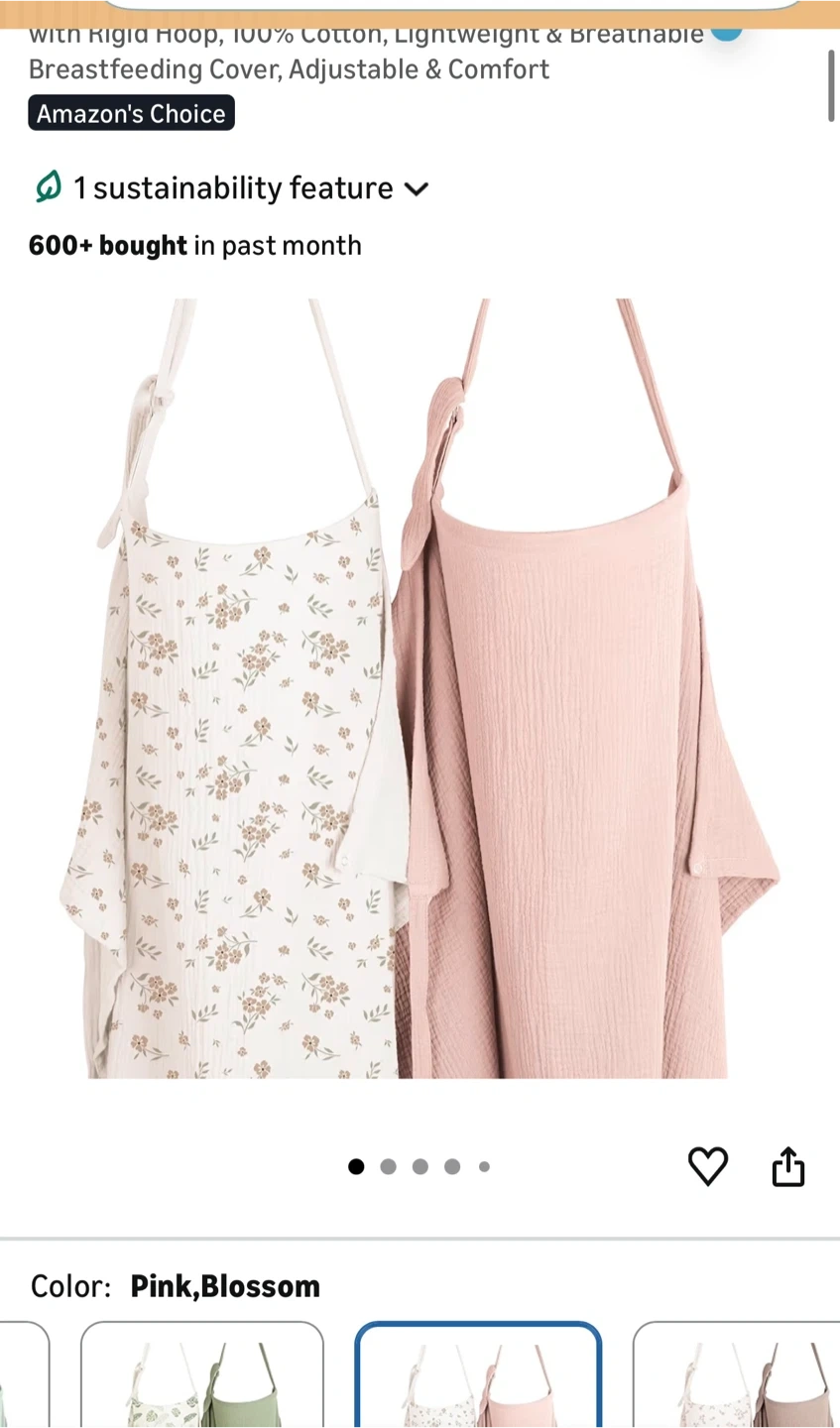 This breastfeeding cover is made of 100% cotton with a rigid hoop. It's lightweight, breathable, and adjustable for comfort. The cover's generous size provides full coverage during nursing.