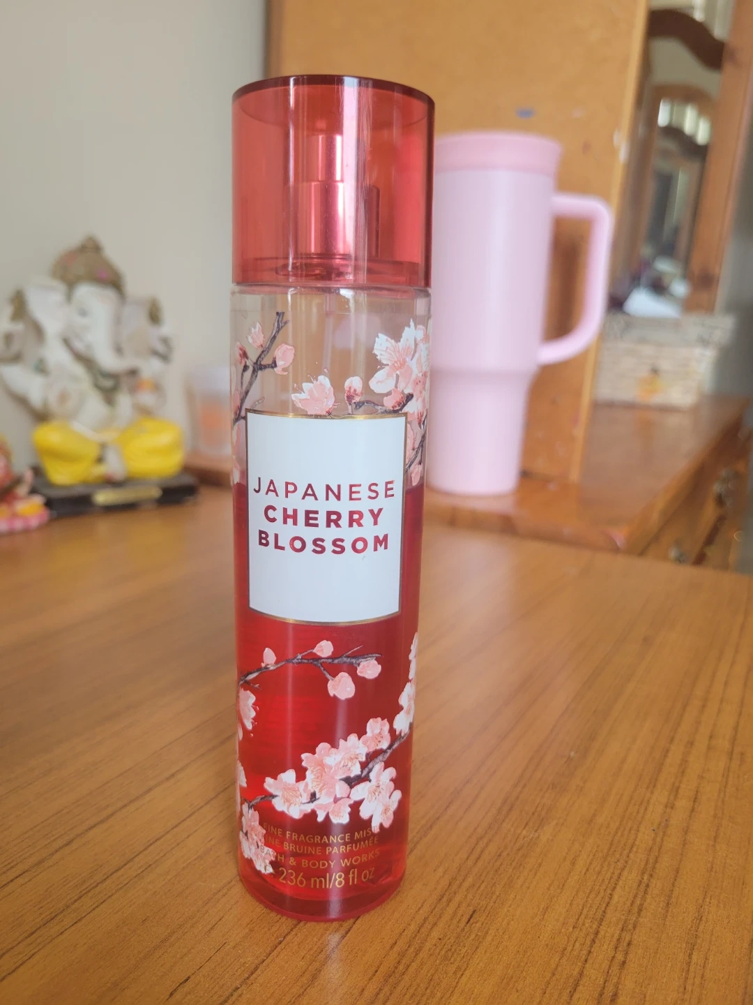 This is the Japanese Cherry Blossom fine fragrance mist from Bath & Body Works. It's a 236 ml or 8 fl oz bottle. This mist is great for a light, refreshing scent throughout the day.