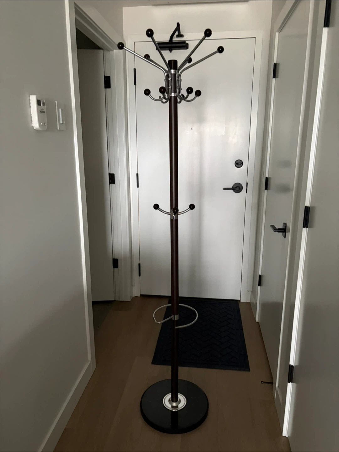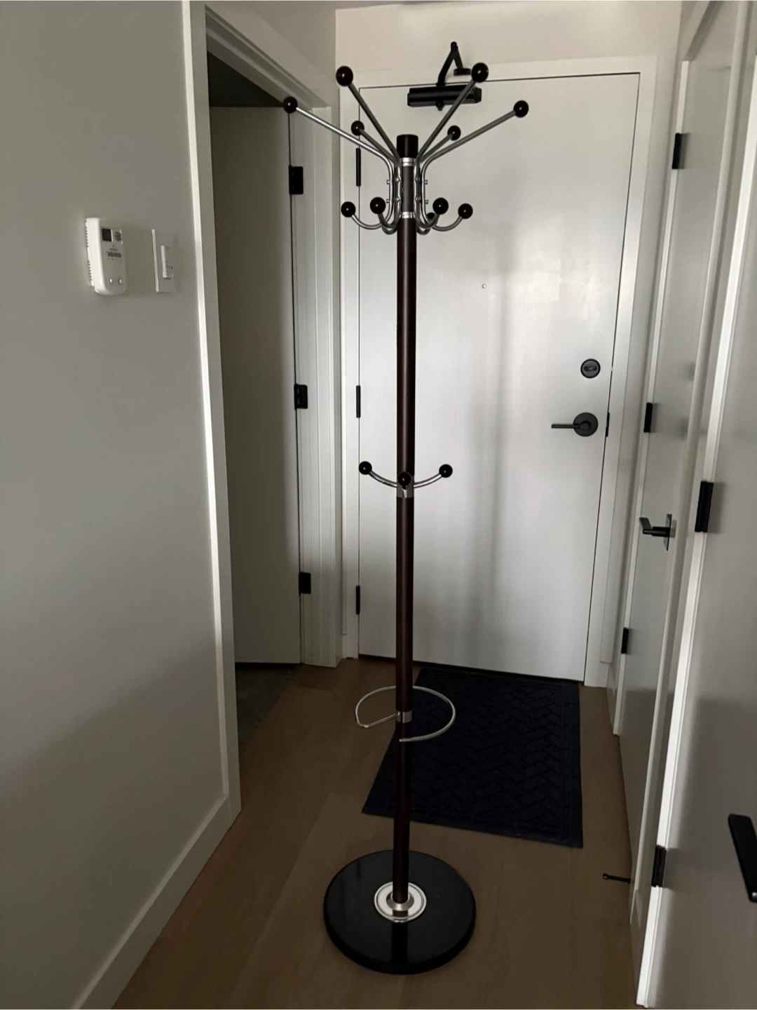 Selling a coat rack stand. It's in great condition and ready to help organize your entryway or closet. This stylish and functional piece is perfect for hanging coats, hats, and scarves, keeping your space tidy and welcoming 45.00 o.b.o ( trades welcome )