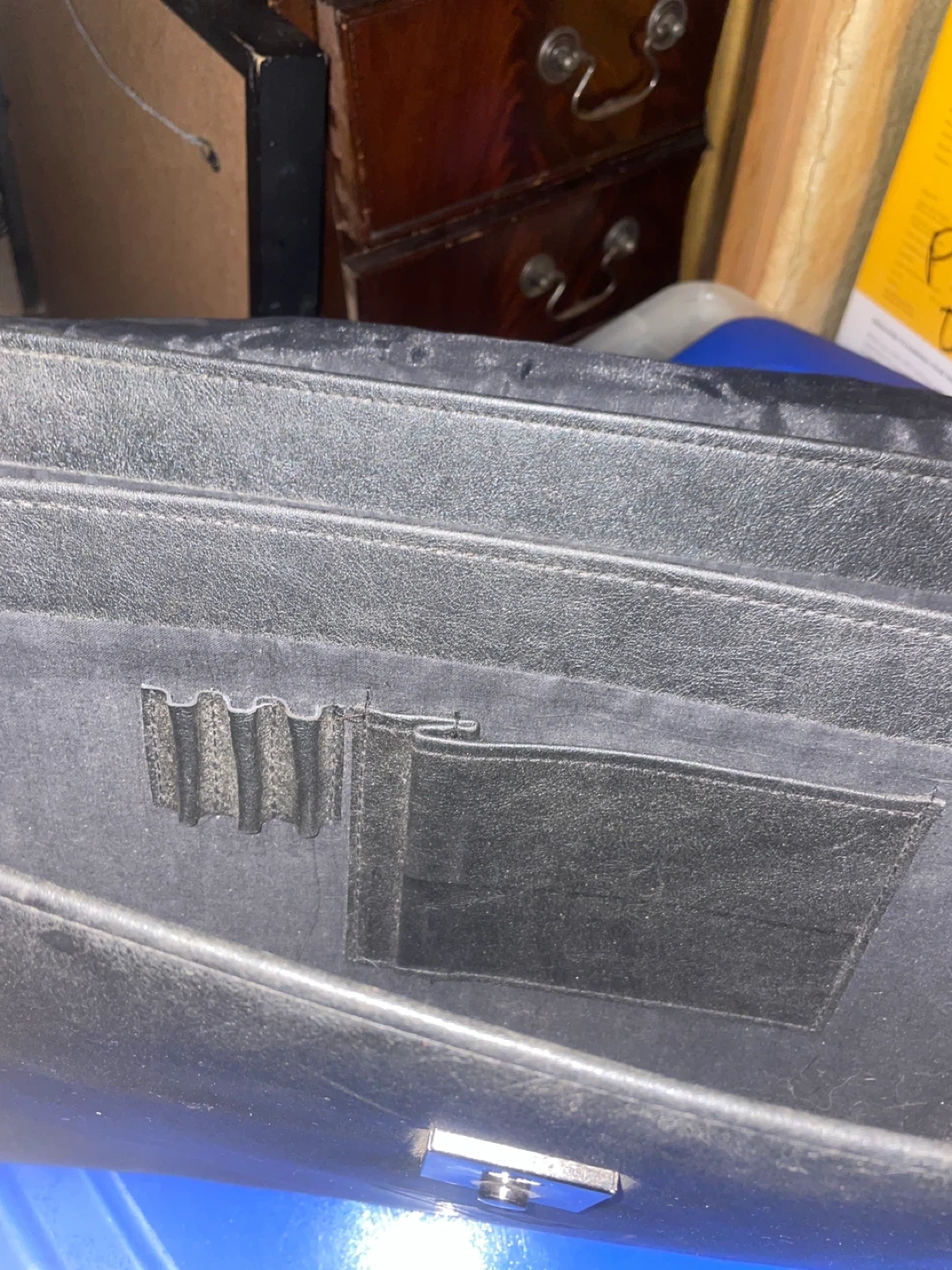 Selling a vintage black leather briefcase. It has a unique logo on the front. The Pittsburgh Penguins !!