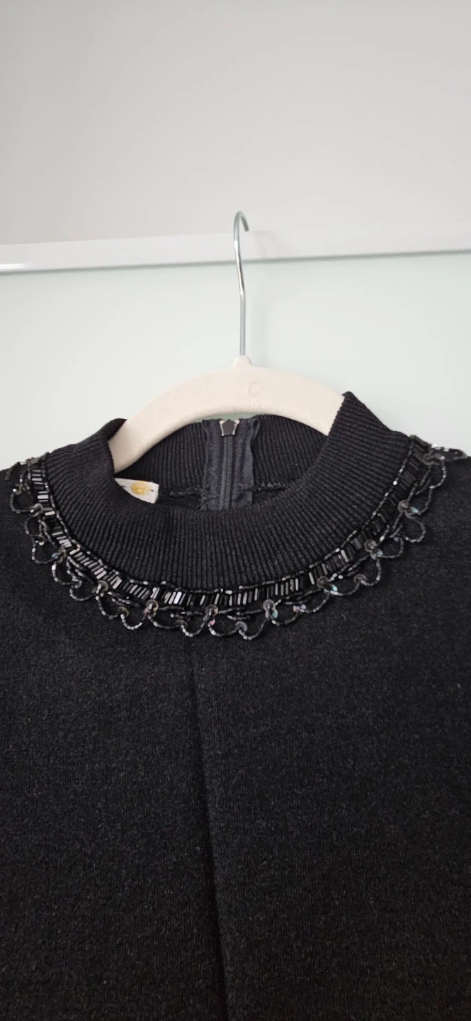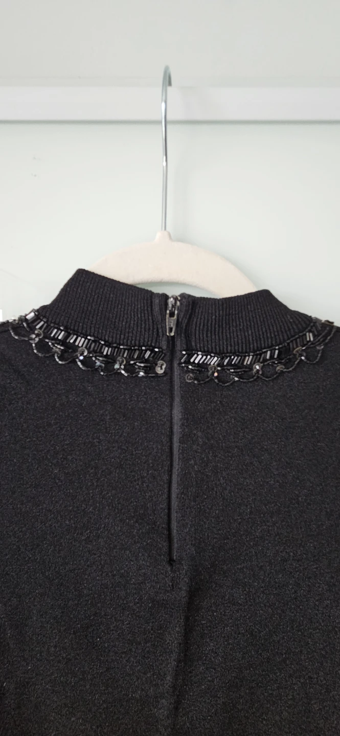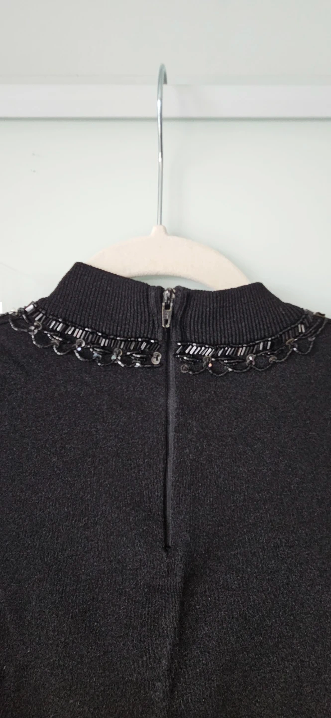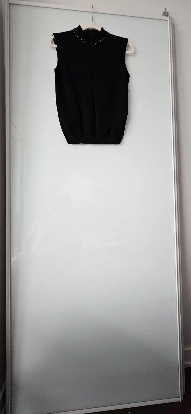 Selling a vintage sleeveless sweater top by Helen Harper! Size medium. It's a stylish piece with beaded detailing around the collar. Perfect for layering or wearing on its own. Made in Canada!