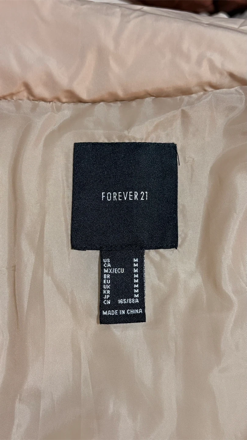 Beige Forever 21 puffer jacket in excellent condition — no flaws, rips, or stains.