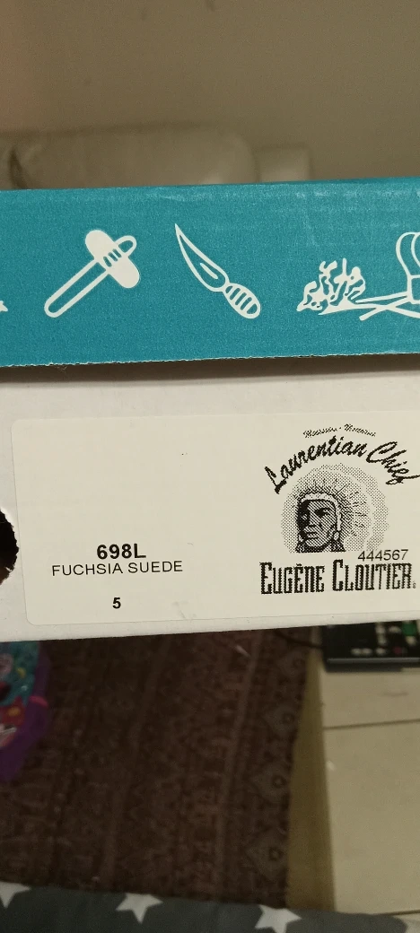 These adorable pink moccasins from Eugene Cloutier are size 5 and made in Canada! They feature a soft suede exterior and fluffy white fur trim. The moccasins come with their original box.