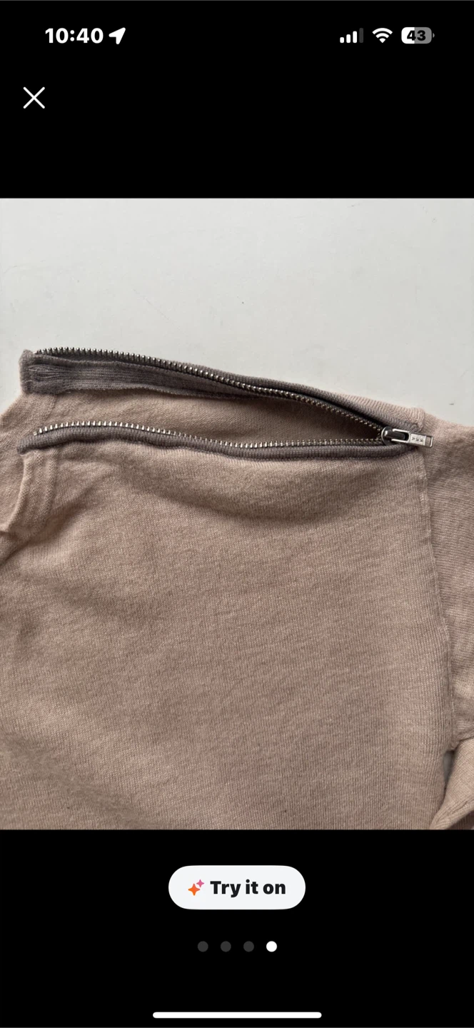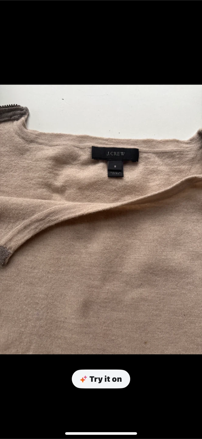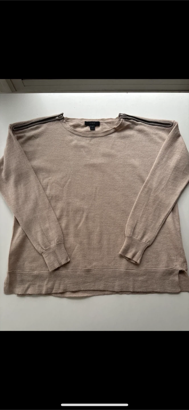 Selling a gently used J.Crew sweater in a lovely beige colour. It's a size small and features stylish zipper details on the shoulders. Perfect for adding a touch of sophistication to your wardrobe!
