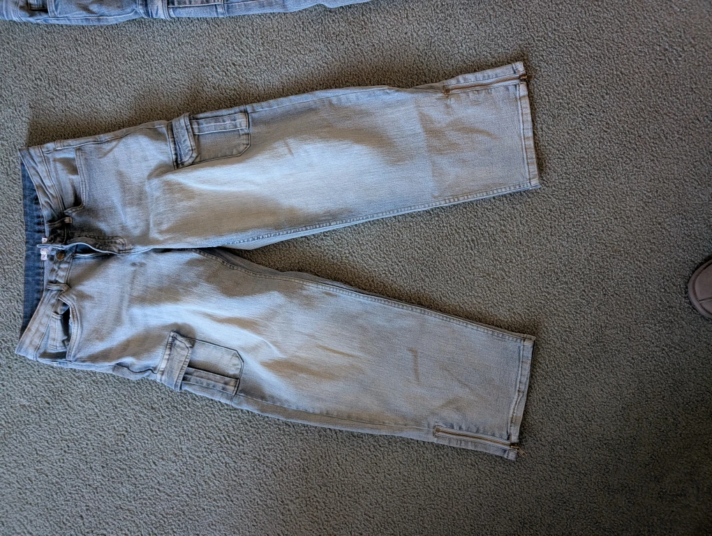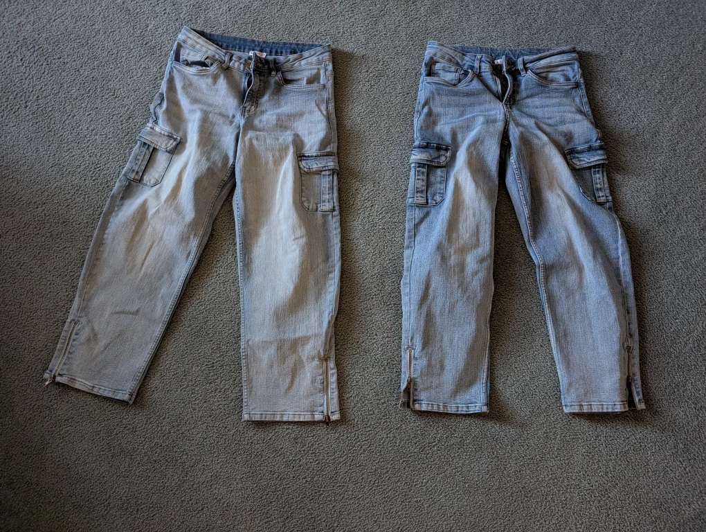 FREE. Two pairs of Venus denim cargo pants in size 10 and 12 ladies. They're in good condition and ready for a new owner!