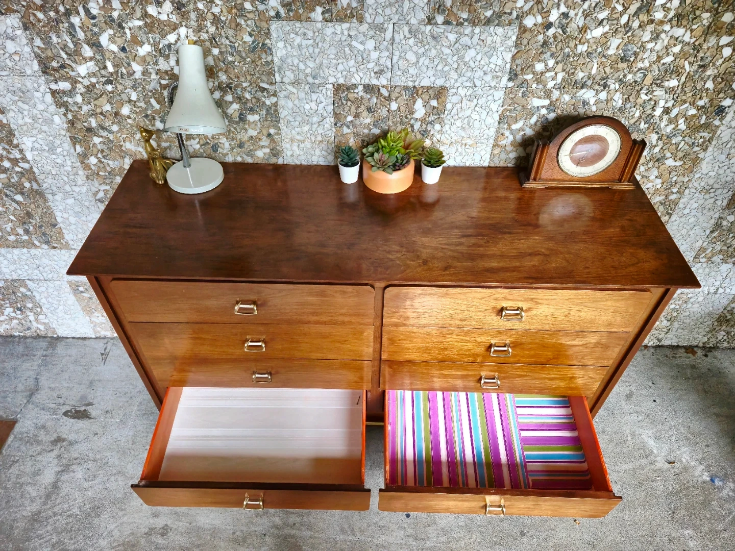 Mid Century 8 Drawer Walnut Lowboy Dresser