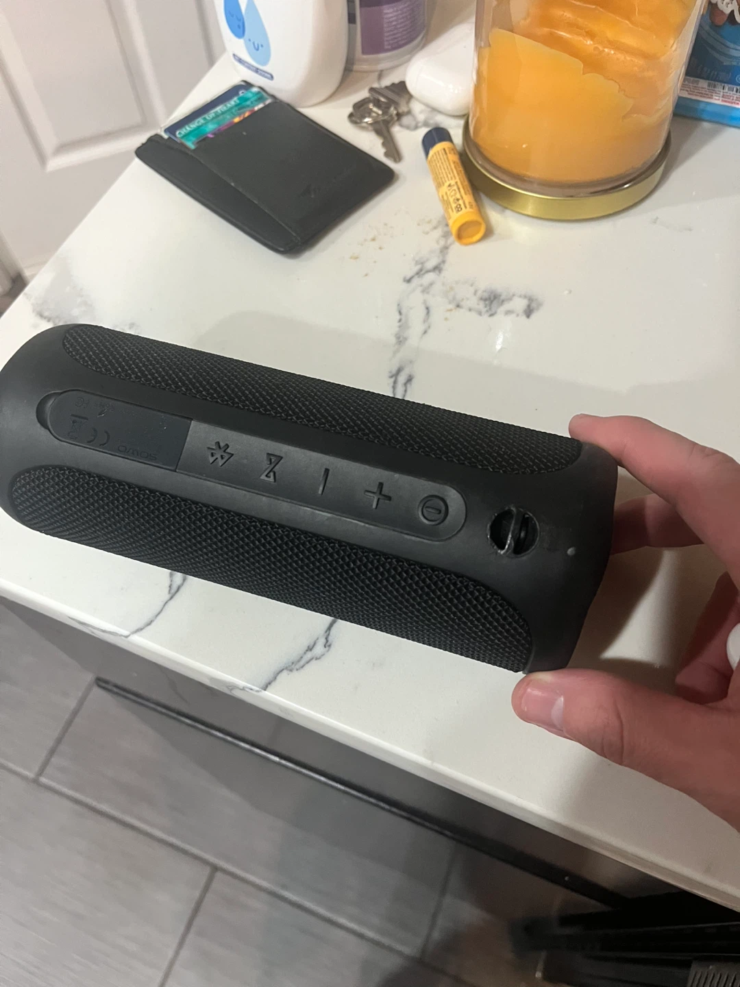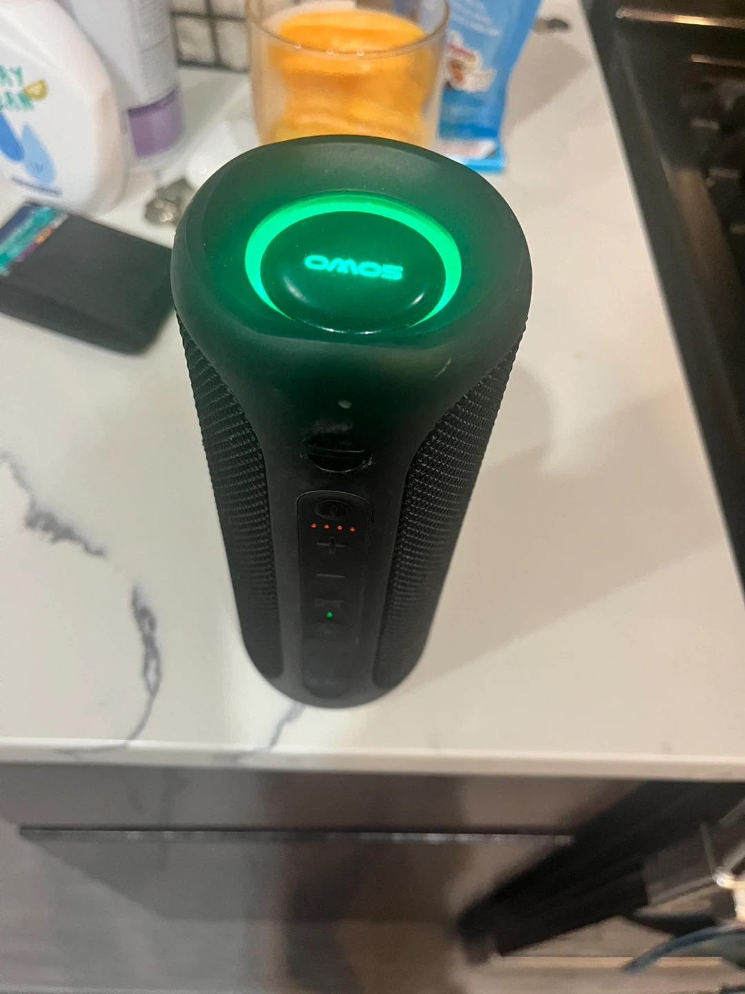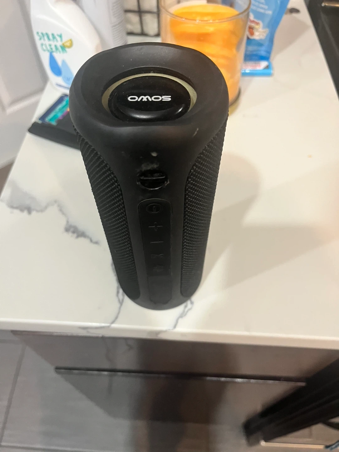 Selling a gently used black OMOS portable Bluetooth speaker. It's perfect for taking your music on the go. Compact and easy to use!